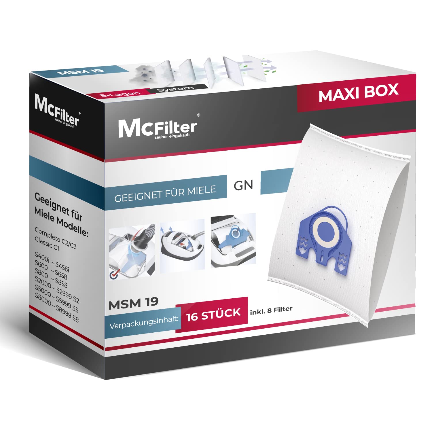 Die MAXI BOX enthält 16 Filterbeutel, einschliesslich 8 Mikrofilter, die individuell zugeschnitten werden können. Die Staubfilterbeutel, welche für Miele Staubsauger geeignet sind, bestehen aus widerstandsfähigem, 5-lagigem Mikrovlies. Dank einer hochwertigen Kunststoffdeckscheibe mit Gummiabdichtung sitzt der Filterbeutel fest und sicher im Staubsauger. Eine automatische Beutelverschlussklappe sorgt dafür, dass der Beutel sicher geschlossen wird und der Beutel staubfrei gewechselt werden kann. Der Lieferumfang umfasst 16 Staubbeutel, 4 Motorschutzfilter und 4 Abluftfilter. Die MAXI BOX ist kompatibel mit den Miele Modellen: S 8000 - S 8999, S 8, S 5000 - S 5999, S 5, S 2000 - S 2999, S 2, S 800 - S 858, S 600 - S 658, Complete C3, Complete C2, Classic C1, Classic C1 Ecoline Serie, S 8340 PowerLine, S 8340 EcoLine, S8360 Powerline, Complete C2 Tango und Complete C3 Cat&Dog.