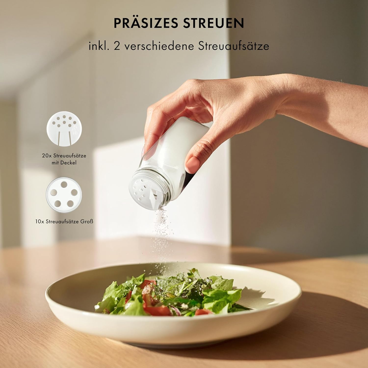 24x eckige Gewürzgläser inkl. Zubehör, Schwarzer Deckel