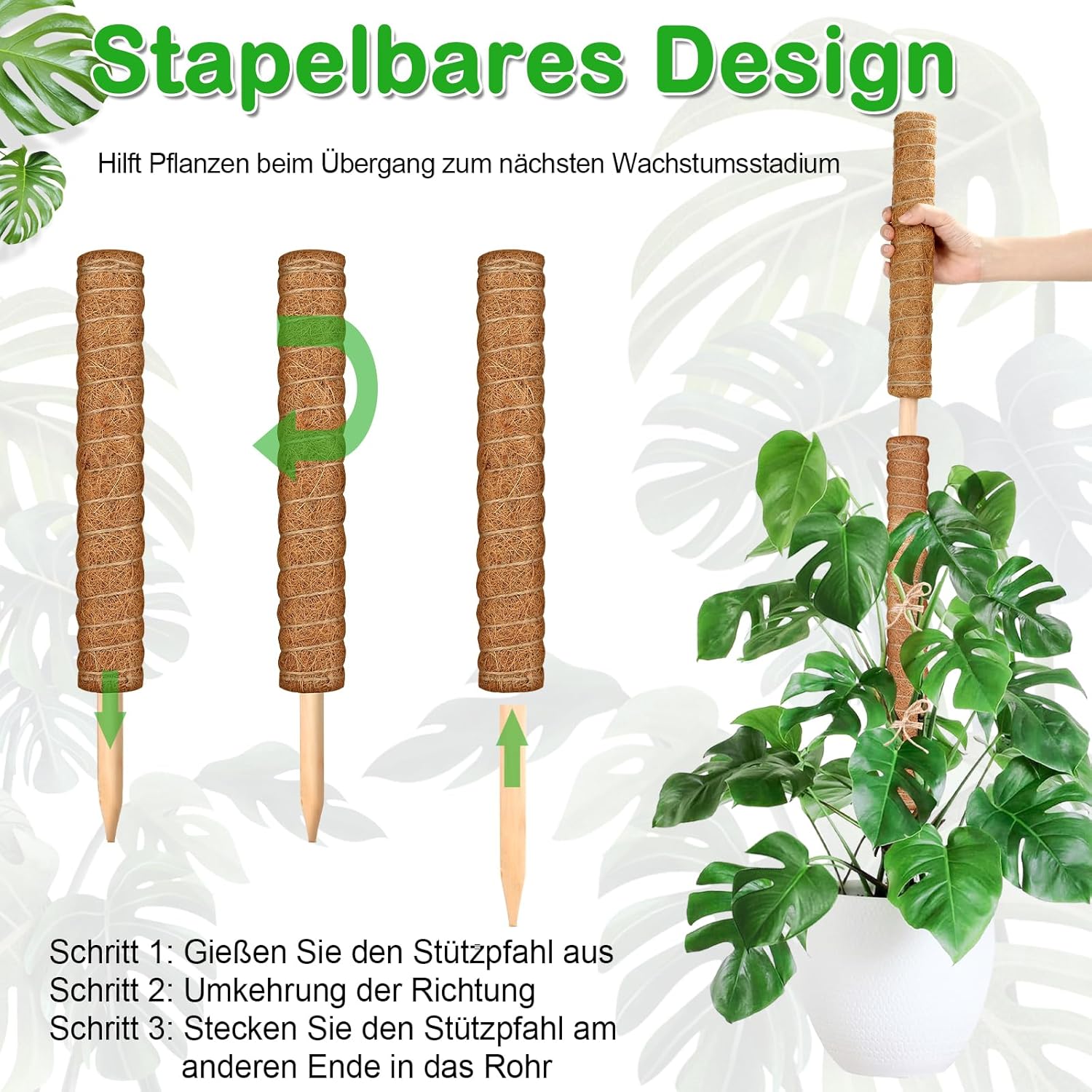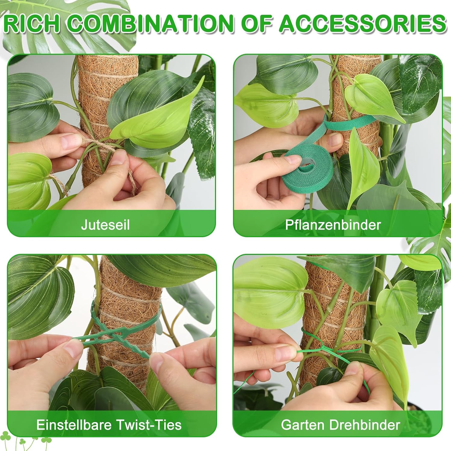 Das modacraft 27-teiliges Pflanzenstab-Set aus natürlichen Kokosfasern unterstützt effektiv das vertikale Wachstum von Zimmerpflanzen. Mit stabilen, biegbaren 42 cm bzw. 32 cm Stäben, die sich für weitere Wachstumsphasen stapeln lassen, wird eine natürliche Umgebung simuliert. Das Set bietet mit Garten-Drehbinden, Pflanzenbindern und Juteseil alles Nötige für die Pflege kletternder Pflanzen.