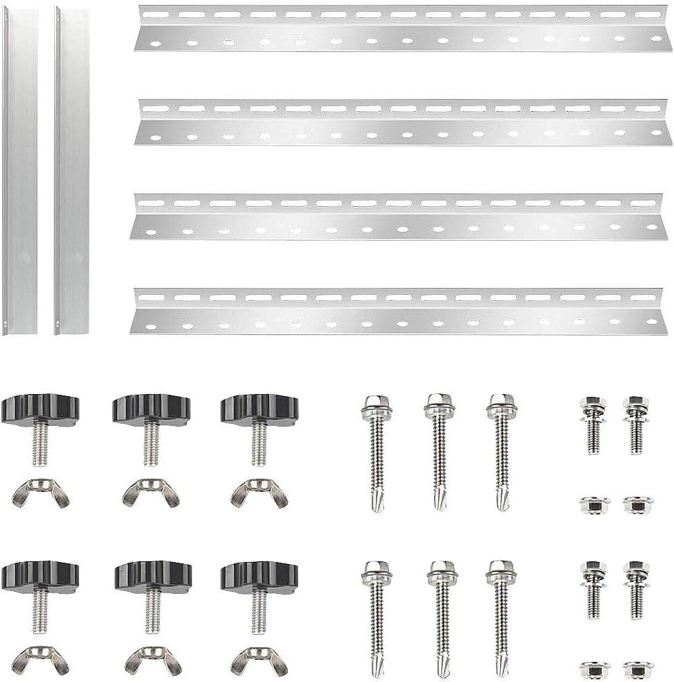 Das 2er-Set verstellbare Aluminium-Solarpanel-Halterungen ist ideal für den Einsatz auf Booten, Wohnmobilen oder Dächern geeignet. Gefertigt aus robustem Aluminium und Edelstahl, bieten die Halterungen eine maximale Belastbarkeit von 150 kg. Sie sind ausgelegt, um Windstärken von bis zu 32 m/Sek. standzuhalten und ermöglichen eine variable Einstellung des Anbringungswinkels in 5°-Schritten. Die Montage erfolgt mittels Schrauben. Im Lieferumfang sind zwei Halterungs-Sets enthalten, bestehend aus jeweils vier Alu-Profil-Lochplatten, zwei Arretierungs-Platten, sechs M8-Schrauben, sechs Flügelmuttern, vier M6-Schrauben, sechs selbstschneidenden Schrauben ST und einer deutschen Anleitung.