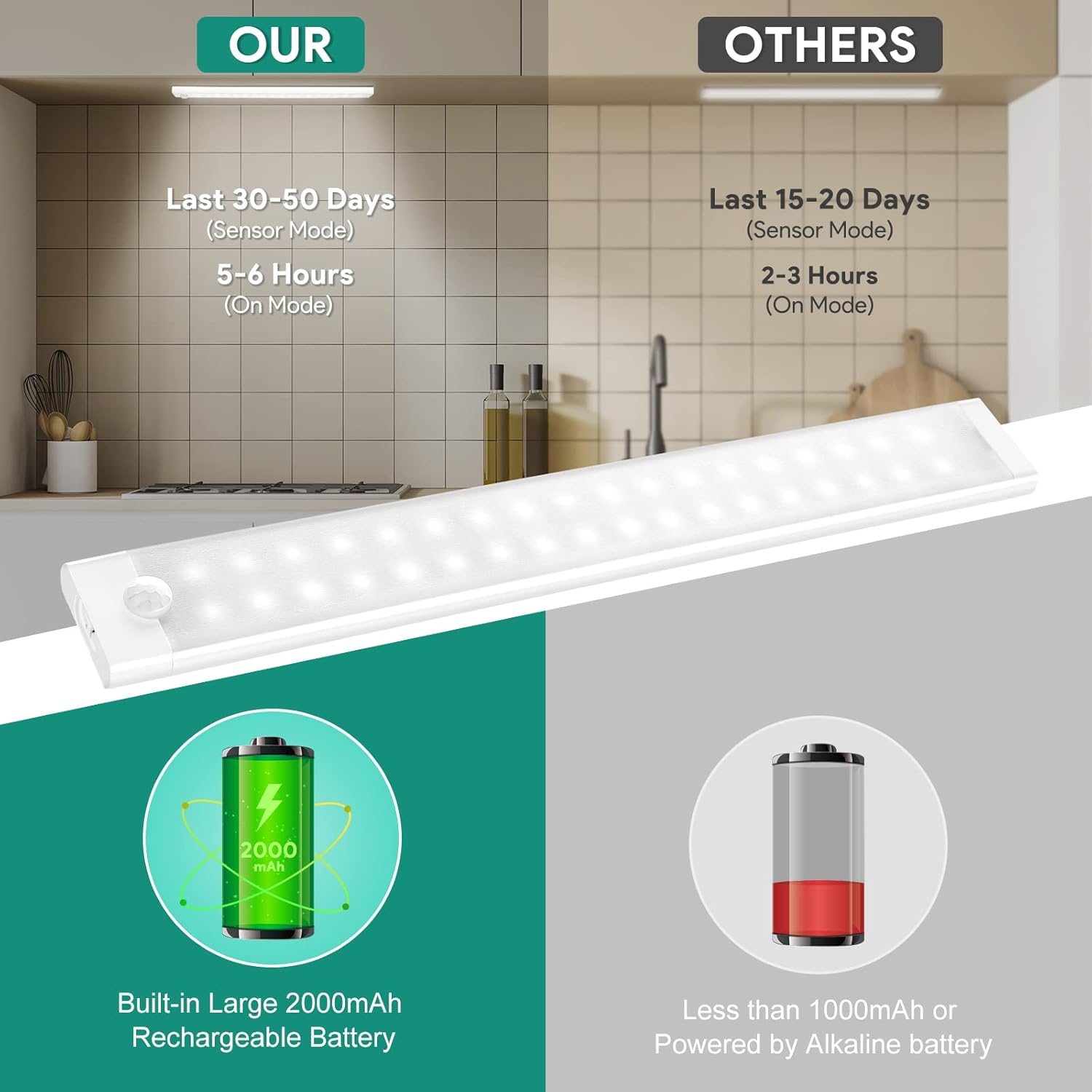 Die Unterbauleuchte ist eine rechteckige Leuchte mit einer kaltweissen oder warmweissen Lichtfarbe und einer Helligkeit von 360 Lumen. Sie eignet sich ideal für den Einsatz in Schränken oder in der Küche und verfügt über einen praktischen Druckknopfschalter zur einfachen Bedienung. Besonders hervorzuheben sind der integrierte Bewegungssensor und die Dimmfunktion, die für zusätzliche Flexibilität sorgen. Die Energieversorgung erfolgt über einen wiederaufladbaren 2000mAh-Akku, der über USB-C aufgeladen wird. Im Lieferumfang sind drei Leuchten, ein USB-C Kabel, ein Akku und eine Fernbedienung enthalten.