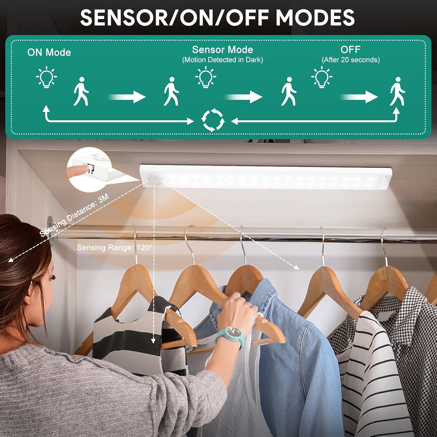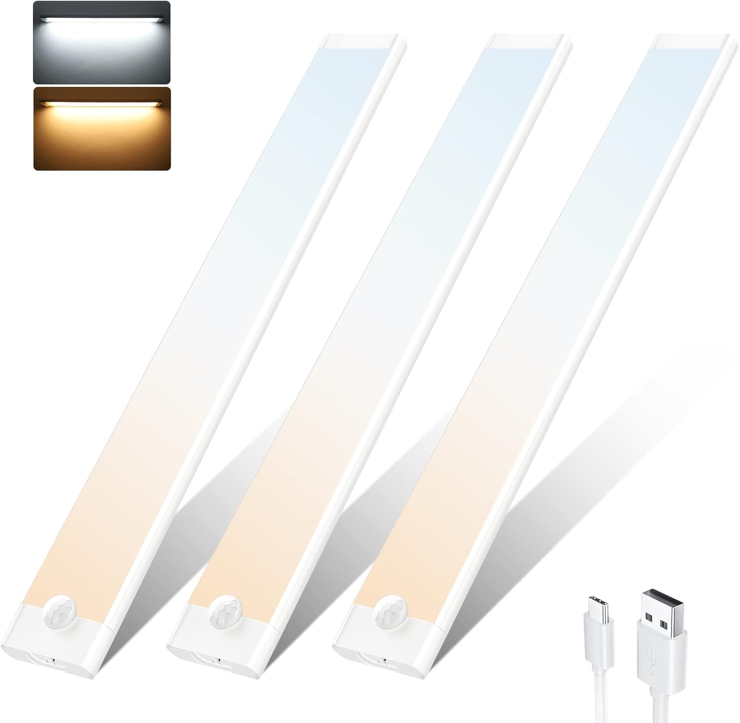 3er Set LED Unterbauleuchte mit Bewegungsmelder, 72leds-30cm