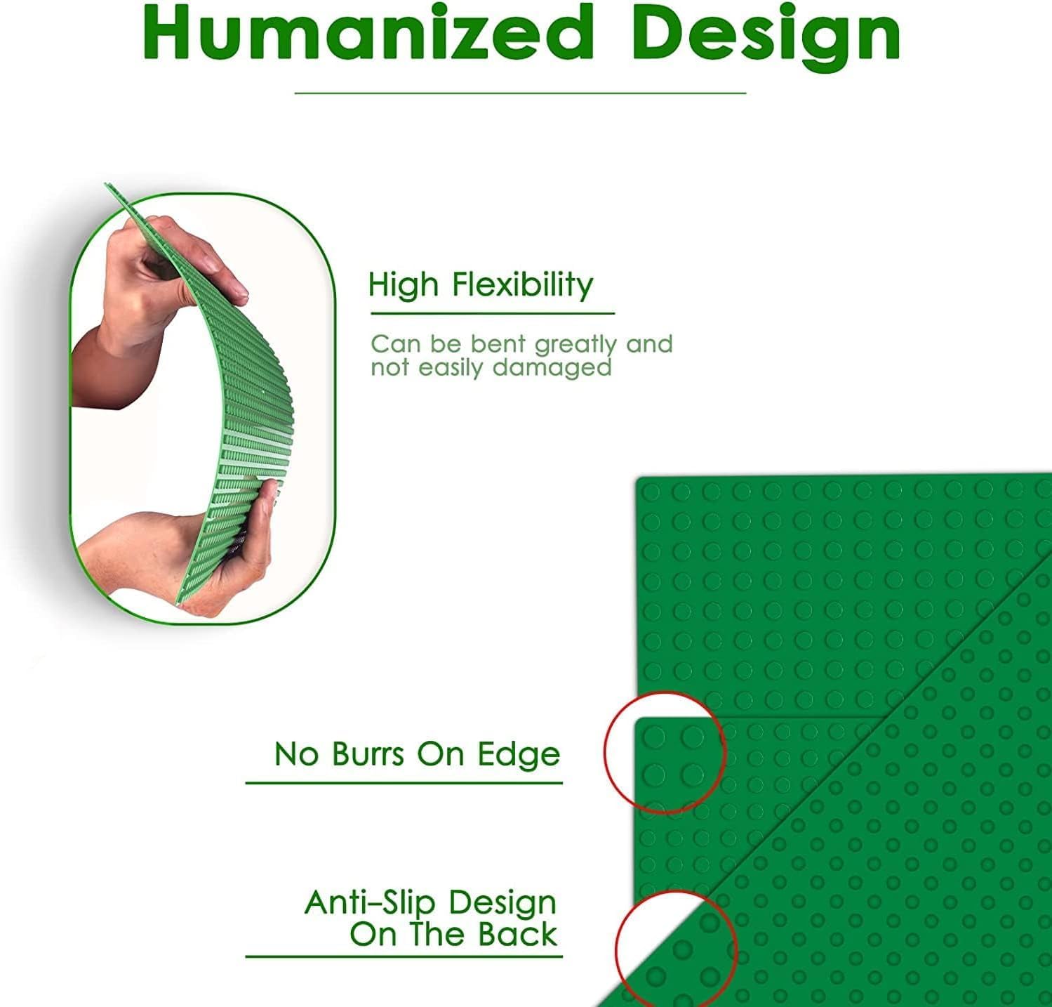 Diese Bauplatten aus robustem ABS Kunststoff sind in den Farben Grün, Blau, Rot und Grau erhältlich und misst 38x38 cm. Sie sind kompatibel mit allen grossen Bauklotzmarken, was vielseitige Verwendungsmöglichkeiten bietet. Die Bauplatten sind speziell für Kleinkinder ab einem Mindestalter von 3 Jahren konzipiert. Der Lieferumfang enthält vier grosse Grundplatten in den genannten Farben.