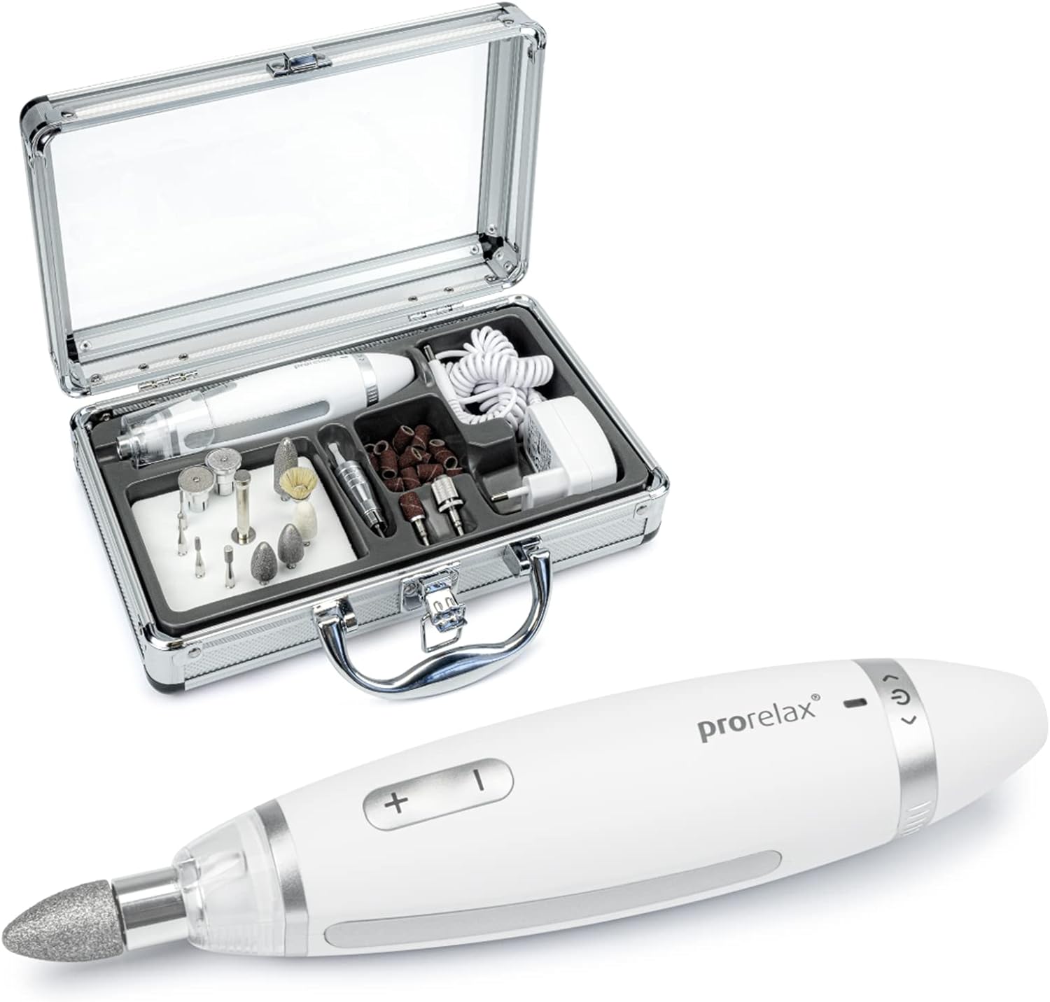 Das prorelax Maniküre-Pediküre-Set DELUXE präsentiert sich als hochqualitative Lösung für anspruchsvolle Hand- und Fusspflege, die sowohl für den Heimgebrauch als auch für den mobilen Einsatz konzipiert ist. Die Verarbeitung von chirurgischem Stahl bei den 15 mitgelieferten Aufsätzen bürgt für Langlebigkeit und hygienische Ansprüche, wobei Saphirbeschichtungen den professionellen Charakter unterstreichen. Ein kraftvoller Mikro-Motor, der eine sanfte bis dynamische Bandbreite mit 2.000 bis 5.400 Umdrehungen pro Minute abdeckt, ermöglicht präzises Arbeiten, während die integrierte LED-Beleuchtung für eine klare Sicht auf das Pflegegebiet sorgt. Zur Vermeidung von Verunreinigungen ist ein Staubschutz vorhanden, der Haut- und Nagelreste aufnimmt. Die gute Griffigkeit durch die Soft-Grip-Oberfläche trägt zur Handhabungsfreundlichkeit bei. Das Gerät ist universell einsetzbar, ideal sowohl für das Formen der Nägel als auch für die Entfernung von Hornhaut und anderen Verhärtungen. Der praktische Aluminiumkoffer dient nicht nur als Aufbewahrungsort, sondern auch als stilvoller Begleiter auf Reisen.