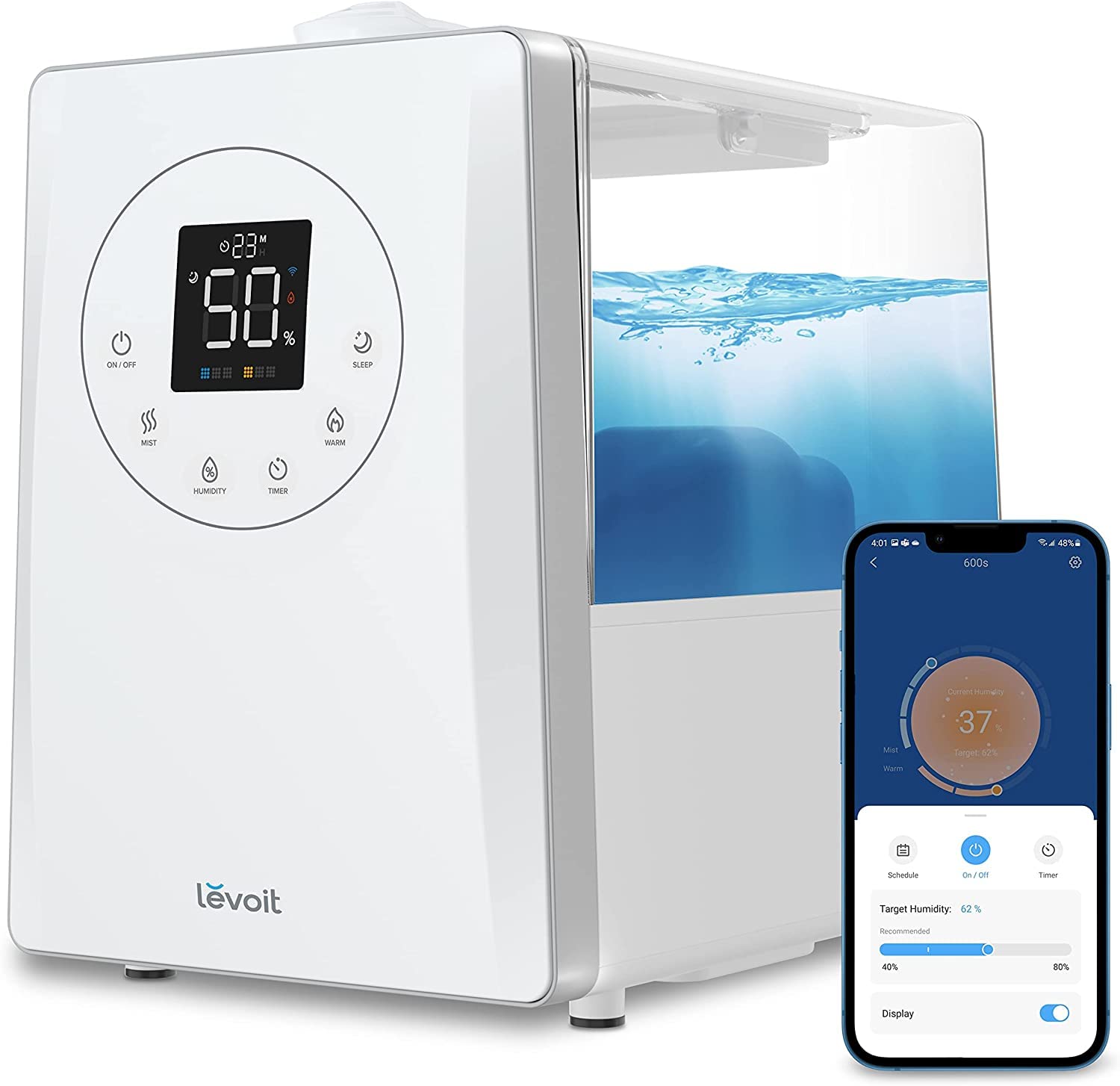 Dieser Luftbefeuchter besitzt zwei Nebeleinstellungen. Für den Winter eignet sich der warme Nebel, während im Sommer der kühle Nebel unter anderem bei Allergiesymptomen helfen kann. Er kann einen Bereich von bis zu 70 m² abdecken. Aufgefüllt wird der Luftbefeuchter ganz einfach von oben. Der Wassertank umfasst 6 Liter und lässt sich entnehmen. Auch während der Nacht kann der Luftbefeuchter betrieben werde. Im Schlafmodus bleibt der Bildschirm ausgeschaltet und das Gerät arbeitet sehr leise und kaum hörbar. Über die Zeitplanfunktion kann der Befeuchter jederzeit in Betrieb genommen werden, auch wenn man nicht zu Hause ist. In das integrierte Aromafach lässt sich jeder beliebige Duft einfüllen, den der Luftbefeuchter dann verströmt. Leistung: 280 W Spannung 240 V Laufzeit: 50 h Gewicht: 3,09 kg