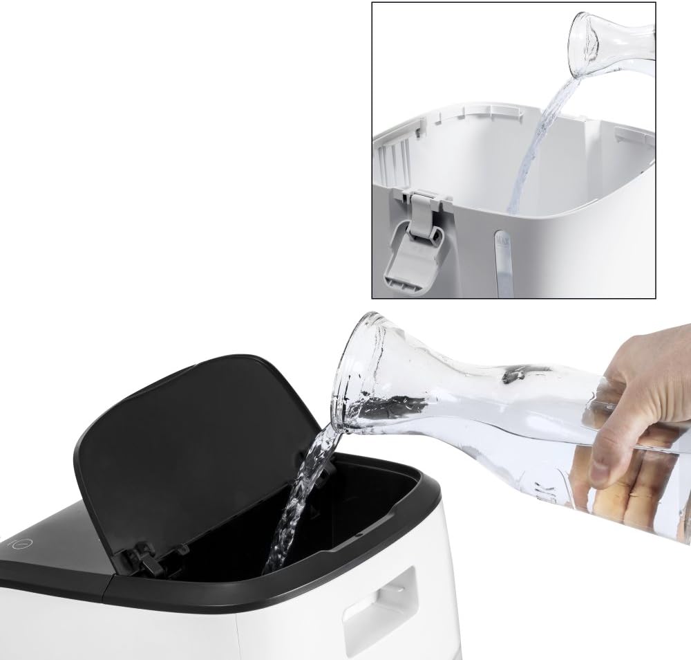 Der TROTEC Aircooler PAE 51 in Weiss-Schwarz ist ein vielseitiger 4-in-1 Luftkühler, der mit einem 20 Liter Tank und einer Verdunstungsleistung von 2 l/h ausgestattet ist. Der mobile Luftkühler bietet neben der Luftkühlung auch Ventilation, Luftreinigung und Luftbefeuchtung, wodurch er das ganze Jahr hindurch nutzbar ist. Die angesaugte Luft durchläuft einen Honeycomb-Verdunstungsfilter, wird angenehm abgekühlt und zurück in den Raum geleitet. Mit vier einstellbaren Stufen und Funktionen wie Naturwind-Modus, Swing-Funktion und Nacht-Modus passt sich das Gerät individuellen Bedürfnissen an. Ein Timer sowie eine automatische Abschaltung inklusive Filter-Trocknung bieten praktischen Komfort. Der grosse Wassertank gewährleistet langanhaltende Betriebszeiten, die durch Hinzufügen von Eis oder Kühlakkus verlängert werden können. Die Einstellungen auf dem übersichtlichen Bedienfeld und die Fernbedienung sorgen für Benutzerfreundlichkeit, während die Wasserfüllstandsanzeige den aktuellen Füllstand anzeigt.