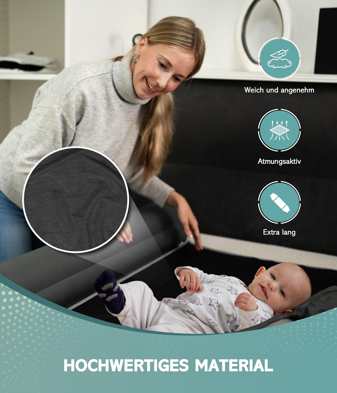Der aufblasbare RAWVEL Rausfallschutz Light bietet mit 70 cm Länge eine grosse Schutzfläche. Er ist ohne Pumpe in unter einer Minute einsatzbereit, leicht, kompakt und ideal für Reisen. Dank BPA-freiem Material ist er sicher und stabil. Universell einsetzbar für verschiedene Betttypen, verbessert die atmungsaktive Oberfläche den Schlafkomfort, besonders in warmen Nächten. Die Gesamtmasse betragen 87 x 130 x 18 cm.