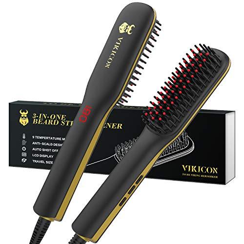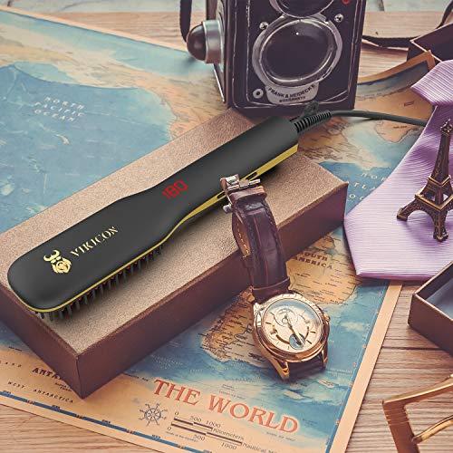 Dieser 3-in-1-Bartglätter (Haarbürste, Haarglätter, Bartglätter) ist mit der neuesten MCH-Keramiktechnologie ausgestattet, die eine gleichmässige Wärmeentwicklung bietet. Das Gerät benötigt zum Aufheizen ca. 60 Sekunden. Ausserdem verfügt es über einen LCD-Bildschirm sowie über harte rote Borsten, um das Gesicht zu schützen. Der Haarglätter hat neun Hitzeeinstellungen von 120 bis 200 Gradcelsius und ist für alle Haarlängen und Haartypen geeignet. Das Gerät kann zwischen Gradcelsius und Fahrenheit wechseln und liefert durch die universelle Spannung weltweit die gleiche Leistung.