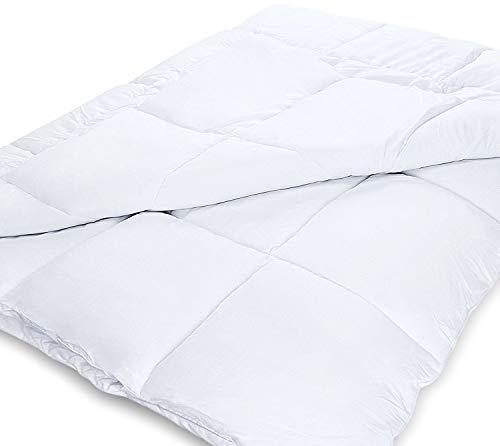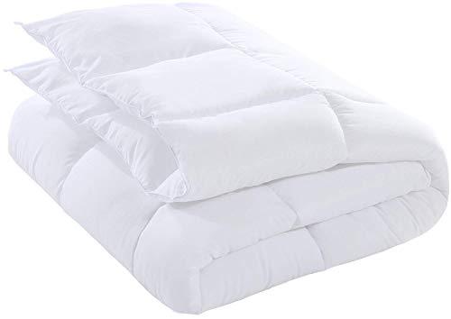 Die Bettdecke hat eine Grösse von 220 x 240 cm und eine Füllungsdichte von 370 g/m². Dank der Boxnähte bleibt die Füllung an ihrem Platz und verhindert ein ungleichmässiges Verteilen. Die Bettdecke besteht aus weichen Stoffen und hat eine Füllung aus silikonisierten Plüschfasern für ein angenehmes und gemütliches Gefühl. Vier Ecklaschen erleichtern das Anbringen des Bettbezugs. Die Bettdecke kann in der Waschmaschine im Schon- oder im Feinwaschgang mit zwei Spülgängen mit kaltem Wasser gewaschen werden und entweder an der Sonne oder im Trockner mit der niedrigstmöglichen Temperatureinstellung getrocknet werden. Sie eignet sich für den Herbst und Winter und für Räume mit mittleren bis tiefen Temperaturen. Das Gewicht beträgt 2,8 Kilogramm.