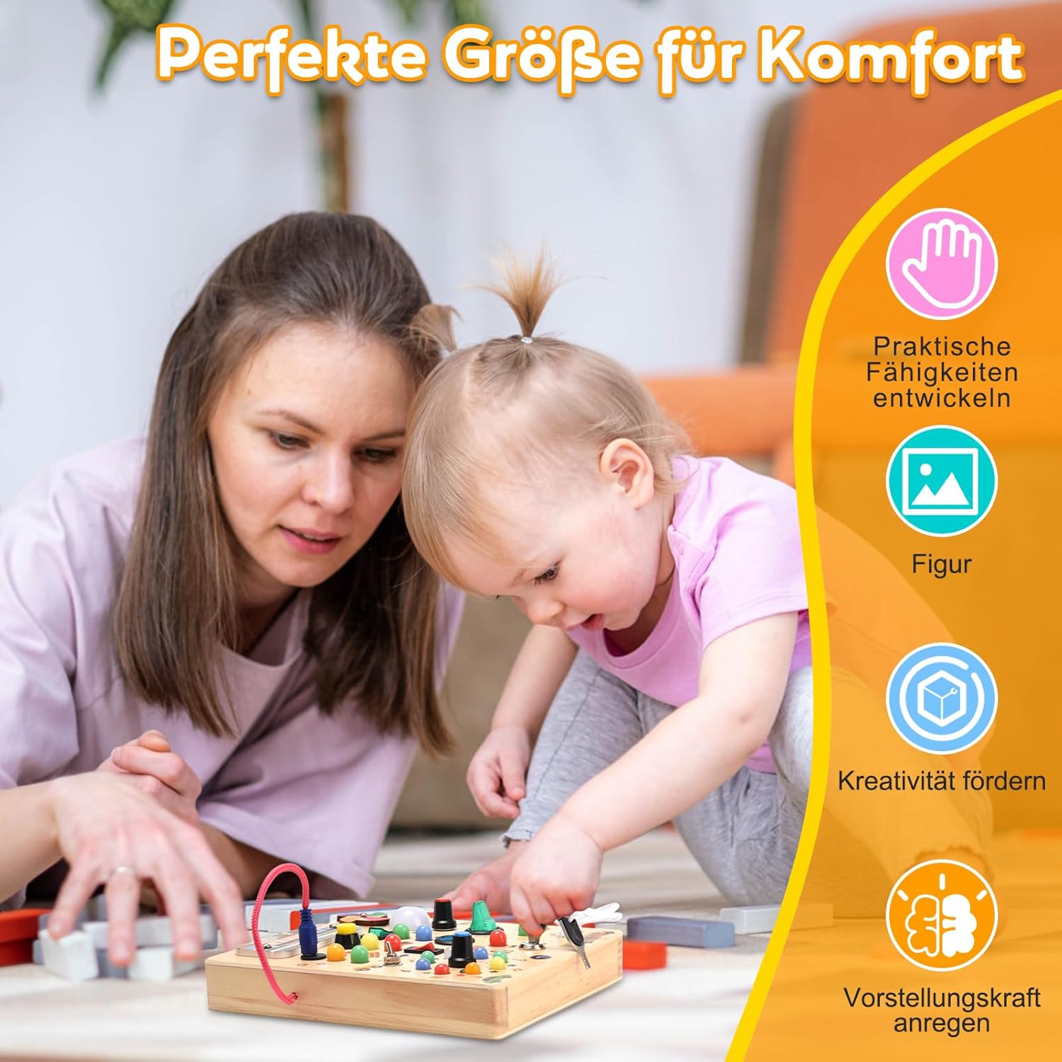 Das Busy Board Motorikspielzeug ist ein vielseitiges Lernspielzeug, das speziell für Kinder ab drei Jahren entwickelt wurde. Es fördert die motorischen Fähigkeiten und die sensorische Wahrnehmung durch eine Vielzahl von interaktiven Elementen. Mit insgesamt 19 integrierten LEDs bietet das Spielzeug visuelle Anreize, die das Interesse und die Neugier der Kinder wecken. Hergestellt aus hochwertigem Holz, ist das Motorikbrett sowohl robust als auch umweltfreundlich. Die kompakten Abmessungen von 18 cm in der Breite, 16 cm in der Länge und 2 cm in der Höhe machen es ideal für den Einsatz zu Hause oder unterwegs. Das mehrfarbige Design sorgt für eine ansprechende Optik und stimuliert die Fantasie der Kinder. Dieses Sinnesspielzeug ist nicht nur unterhaltsam, sondern unterstützt auch die Entwicklung wichtiger Fähigkeiten wie Hand-Augen-Koordination, Problemlösungsfähigkeiten und kreatives Denken. Es ist eine ausgezeichnete Wahl für Eltern, die nach einem ansprechenden und lehrreichen Spielzeug suchen, das die Entwicklung ihrer Kinder fördert.