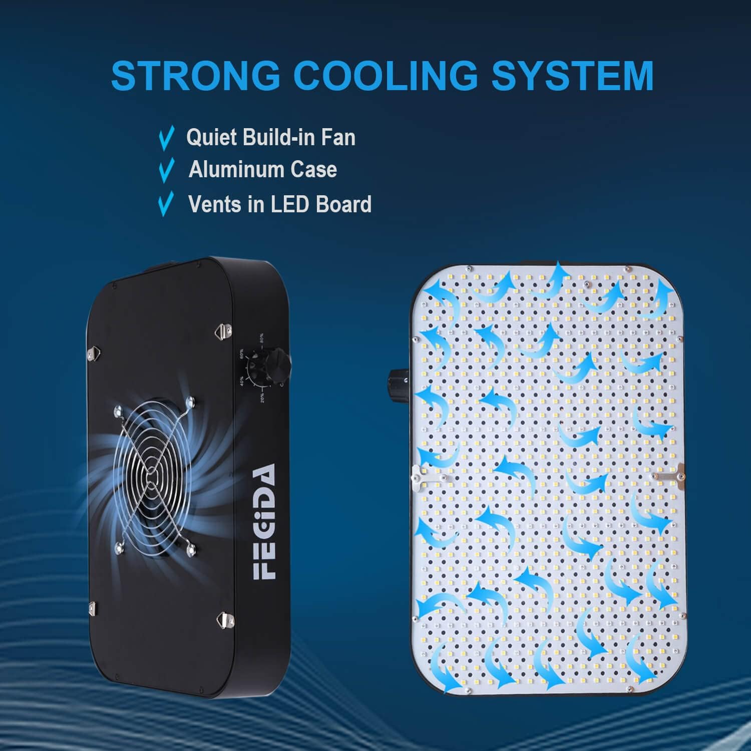 Die FECiDA LED-Pflanzenlampe bietet eine hohe Lichtausbeute von 12.000 Lumen, um das Wachstum von Pflanzen in jeder Phase zu fördern. Mit einem Vollspektrum aus 576 LEDs ist die Lampe ideal geeignet für ein 60 x 60 cm Growzelt. Die Nutzer profitieren von der integrierten stufenlosen Dimmfunktion, die es ermöglicht, die Lichtintensität von 0 bis 100 Prozent je nach Pflanzenwachstumsphase anzupassen, was eine effektive Anpassung des Lichts und Energieersparnisse zur Folge hat. Ein zusätzlicher Vorteil ist die Daisy Chain Funktion, die es gestattet, bis zu vier dieser Lampen ohne zusätzliche Stromkabel miteinander zu verbinden – ideal für grössere Anbauflächen.