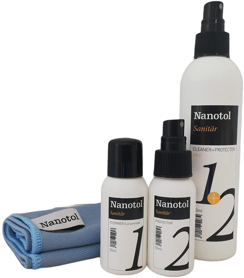 Dieses Duschkabinen-Versiegelung-Set ist für Duschkabinen oder Duschwände aus Acrylglas oder Echtglas geeignet. Die Versiegelung sorgt wie eine Imprägnierung dafür, dass Schmutz und Kalk nicht anhaften können. Dieses Set enthält einen Cleaner, einen Protector, sowie einen 2-in-1 Cleaner/Protector. Der Cleaner und der Protector müssen lediglich einmalig verwendet werden, um einen langfristigen Abperleffekt auf der Duschkabine zu erzielen. Der 2-in-1 Cleaner/Protector kann bei Bedarf regelmässig genutzt werden, um den Effekt aufzufrischen. Im Lieferumfang ist zudem ein Mikrofasertuch enthalten, welches bei der Reinigung genutzt werden kann.