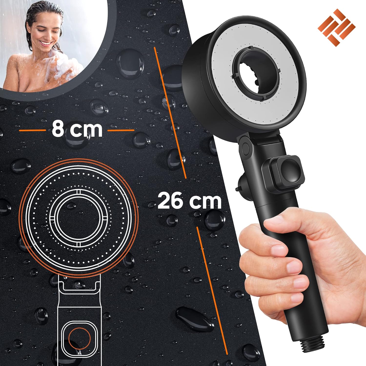 Der runde Duschkopf in Matt Schwarz aus Edelstahl ist speziell für den Einsatz in der Dusche konzipiert. Seine matt schwarze Oberfläche verleiht ihm ein modernes Erscheinungsbild, das sich nahtlos in verschiedene Badezimmereinrichtungen einfügt. Die Wandmontage sorgt für eine stabile und platzsparende Installation. Eine besondere Eigenschaft dieses Duschkopfs ist der Booster-Modus, der für eine erhöhte Wasserintensität sorgt und so ein intensiveres Duscherlebnis ermöglicht.