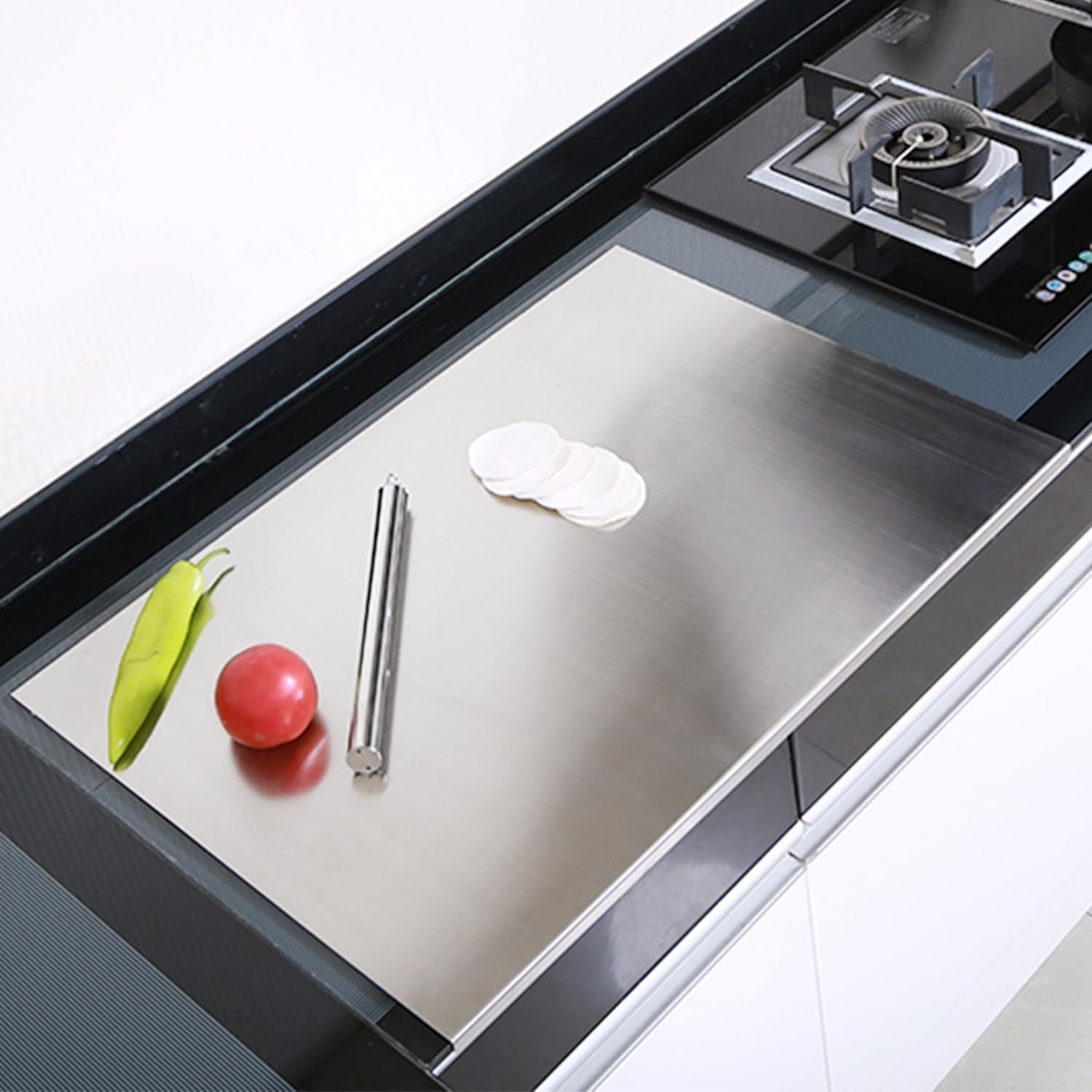 Die Edelstahlplatte mit den Massen 50 x 50 cm hergestellt aus Edelstahl 304 dient als vielseitiges Schneidebrett in der Küche. Sie ist besonders geeignet für die Zubereitung von Teigwaren wie Nudeln, Pizza, Brot, Kuchen, Knödel, Keksen und anderen Teigarten. Die Oberfläche der Platte ist rutschfest, was für eine sichere Handhabung sorgt, und sie kann problemlos in der Spülmaschine gereinigt werden.