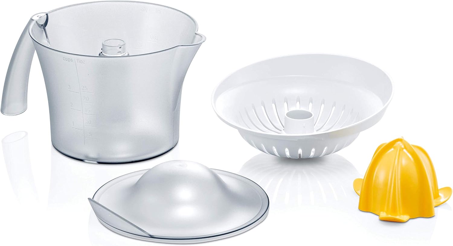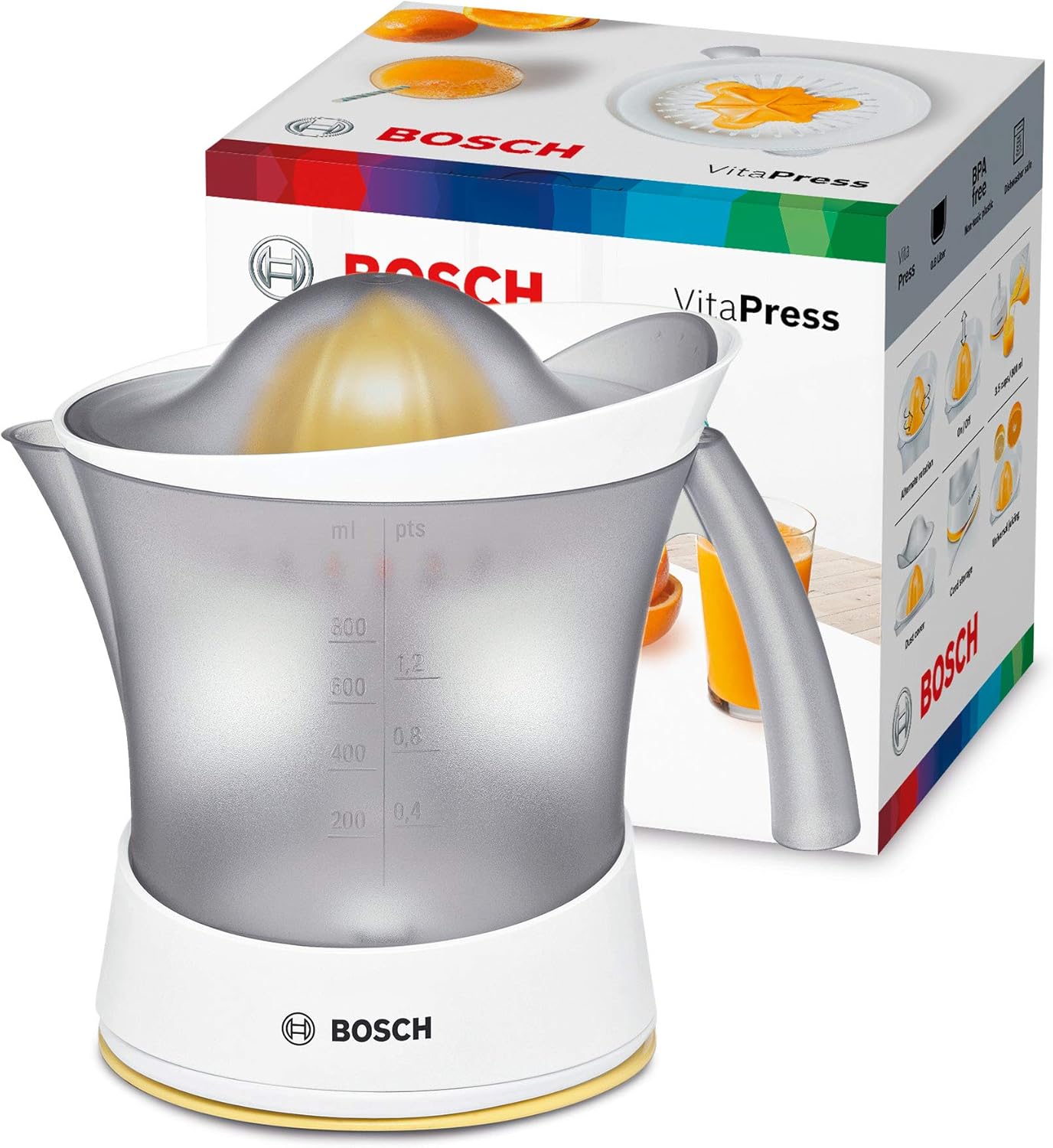 Die Bosch Zitruspresse VitaPress MCP3000N besticht durch ihre hohe Saftausbeute, ermöglicht durch einen effizienten Universalpresskegel, der sowohl kleinere als auch grössere Früchte mühelos handhabt. Der grosszügige 800 ml Saftbehälter ist nicht nur einfach abnehmbar und ausgestattet mit einer nützlichen Mess-Skalierung, sondern auch spielend leicht zu säubern. Zusätzlich ermöglicht die automatische Aktivierung durch leichten Druck auf den Presskegel eine intuitive und bequeme Bedienung. Eine saubere Lösung nach der Nutzung bietet die unkomplizierte Reinigung der abnehmbaren Teile in der Spülmaschine, während Kabelaufwicklung und Staubschutzdeckel eine praktische und staubfreie Verstauung gewährleisten.