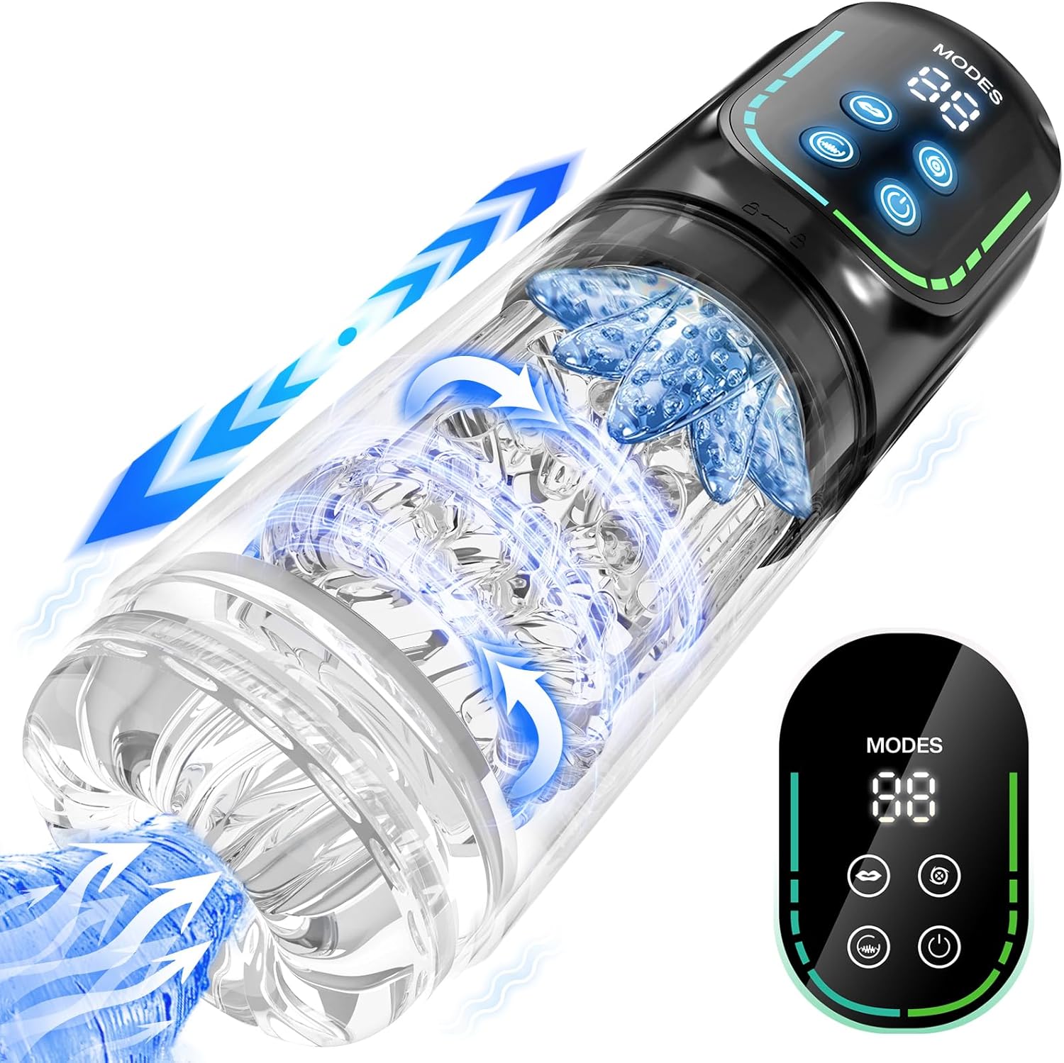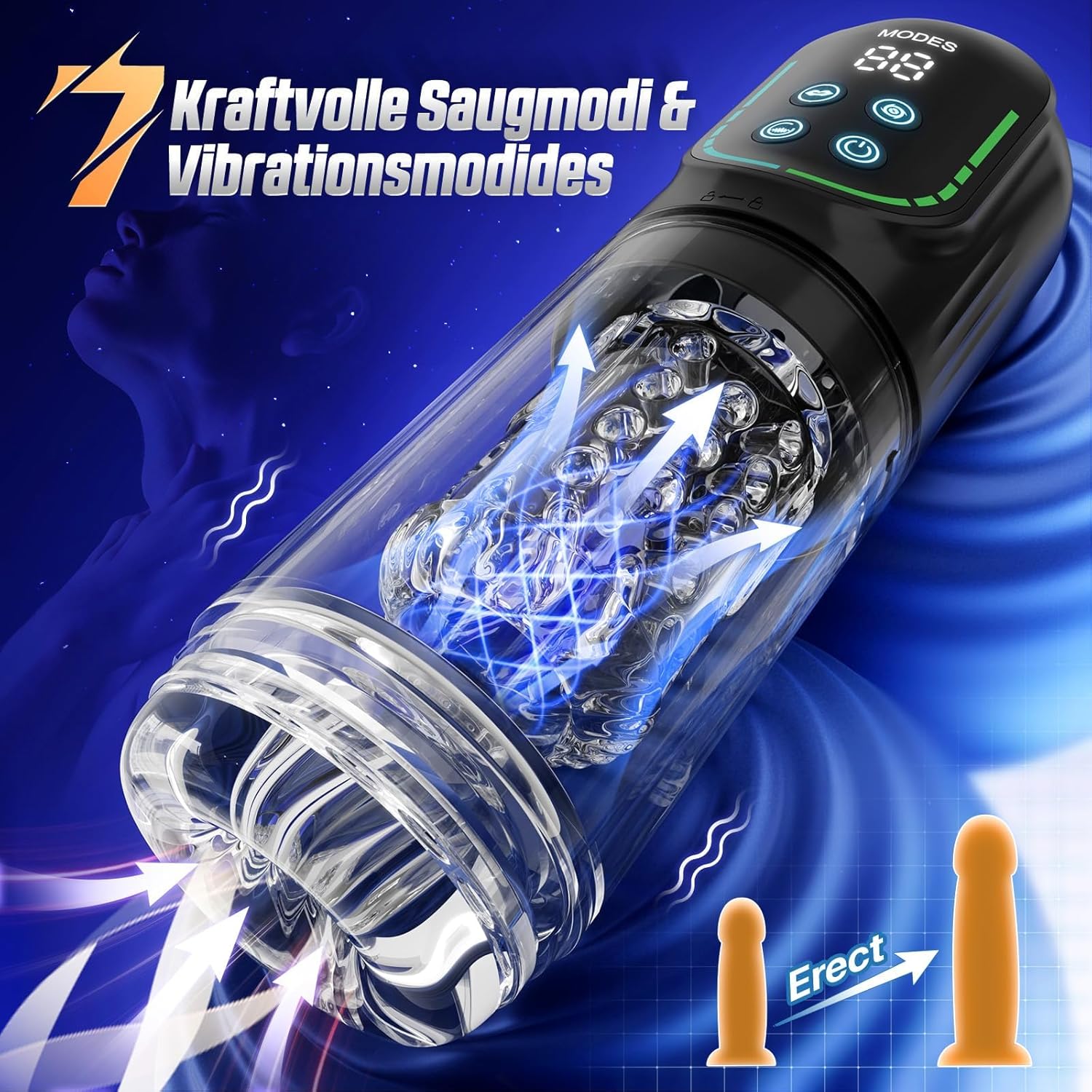 Der elektrische Masturbator in schwarzem Design bietet 7 Teleskopfunktionen, eine Rotationsbewegung und eine Saugfunktion, die für vielseitige Anwendungen sorgen. Der Masturbator ist wasserdicht, was die Reinigung erleichtert und die Nutzung in feuchten Umgebungen ermöglicht.