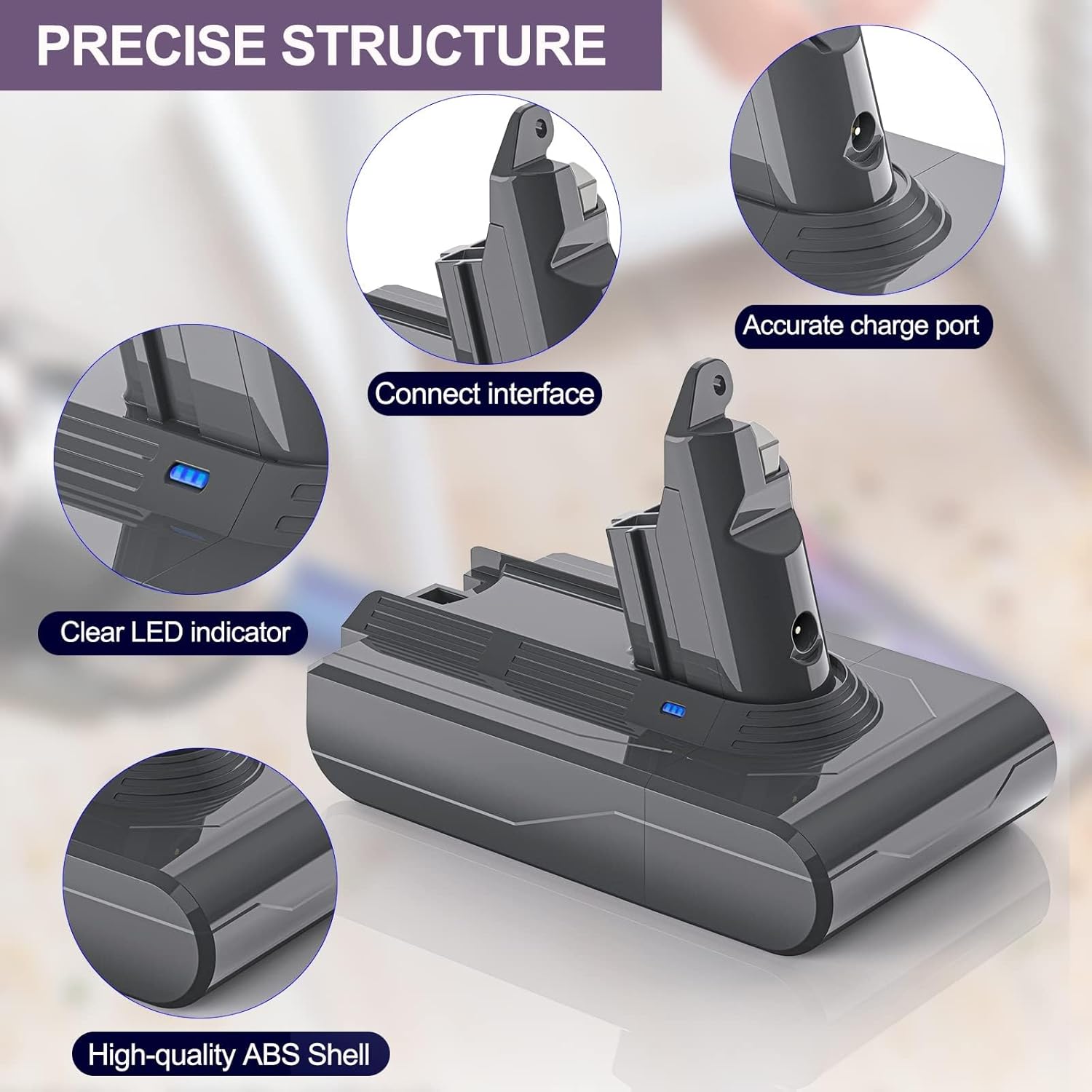 Der LONGFIT Ersatzakku für Dyson V6 Geräte in Grau mit einer Kapazität von 6500 mAh sorgt für eine erweiterte Laufzeit und ist zudem kompatibel mit einer breiten Palette von Modellen, darunter der V6 Animal, V6 Trigger und weitere. Die Installation gelingt schnell und unkompliziert in nur zwei Minuten. Ein intelligentes Batteriemanagementsystem ermöglicht Sicherheit durch Schutz vor gängigen Gefahren wie Überladung oder Kurzschluss.