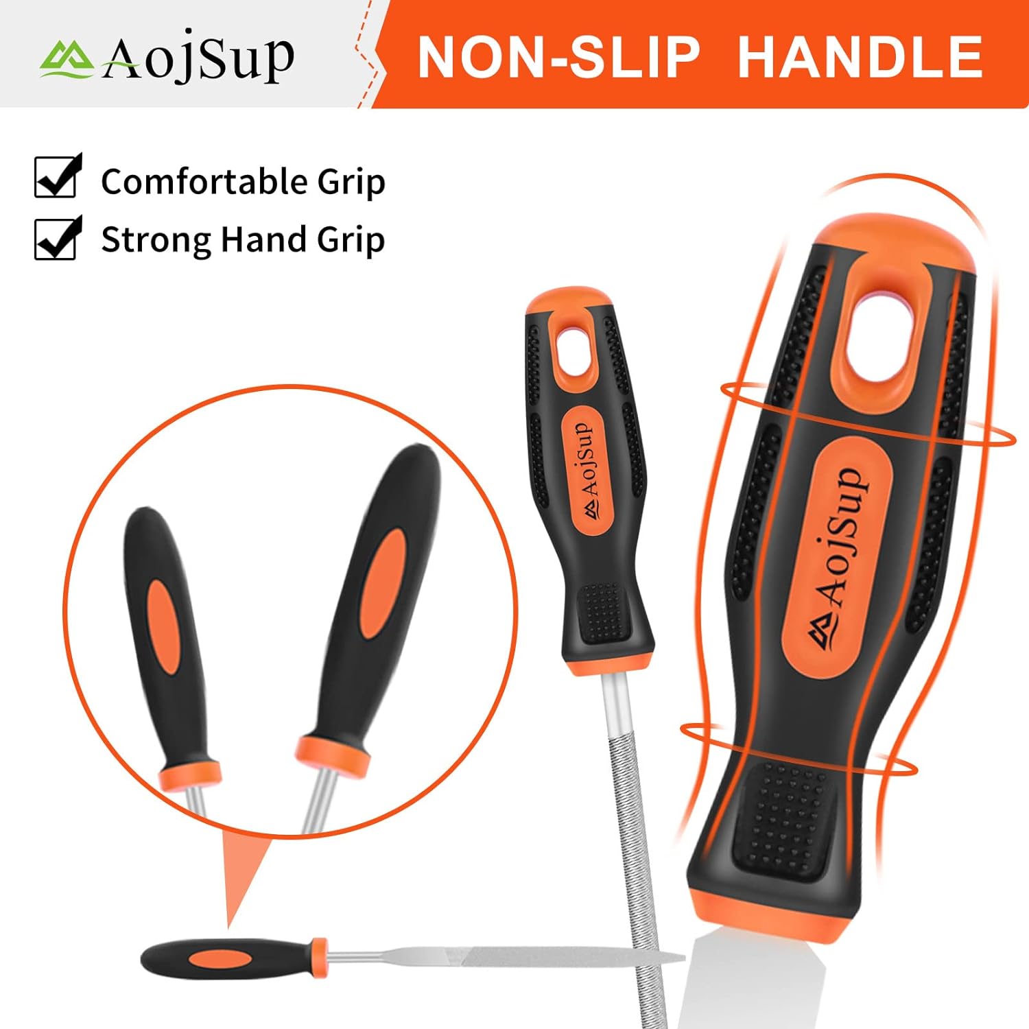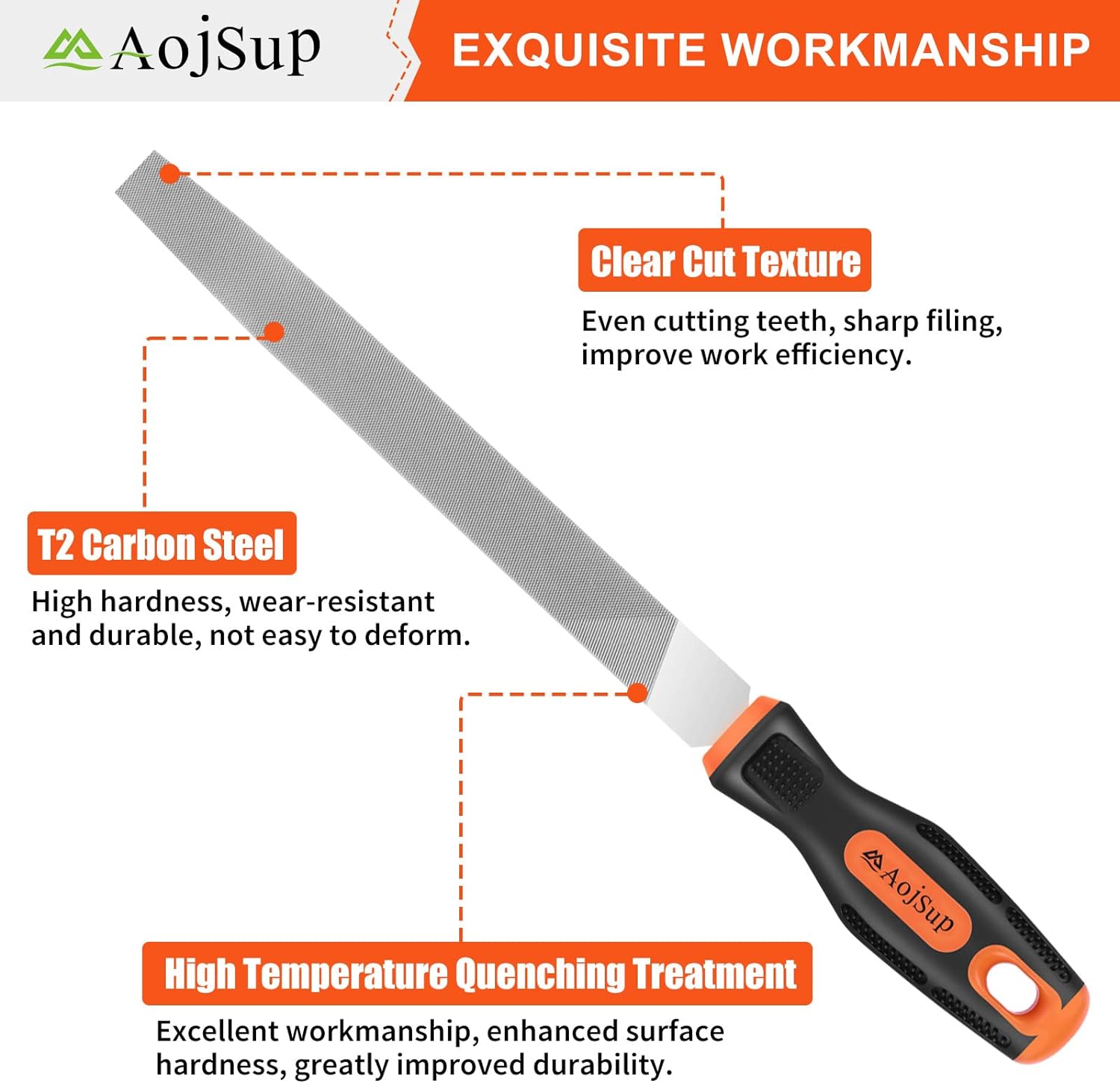 Das 18-teilige Feilenset von AojSup ist ein umfassendes Toolset für vielseitige Anwendungen und besticht durch die Auswahl an Feilen für verschiedene Materialien wie Holz, Metall, Spiegel, Glas, Fliesen, Keramik und Leder. Im Set enthalten sind vier 315 mm grosse Feilen - eine Flachfeile, eine Halbkreisfeile, eine Kreisfeile und eine Dreiecksfeile - ideal für grobe Modellarbeiten. Hinzu kommen zwölf 145 mm lange Nadelfeilen, die Präzisionsarbeiten wie Entfernen, Verfeinern, Formen und Schaben unterstützen. Eine Stahl-Reinigungsbürste ist ebenfalls Teil des Sets und dient der Wartung der Metallfeilen. Die Feilen selbst sind aus robustem T12-Legierungsstahl gefertigt, scharf und entworfen für Langlebigkeit. Der ergonomische, weiche Griff erhöht den Arbeitskomfort, während die mitgelieferte Tragetasche eine ordentliche Aufbewahrung und leichte Organisation der Werkzeuge ermöglicht.