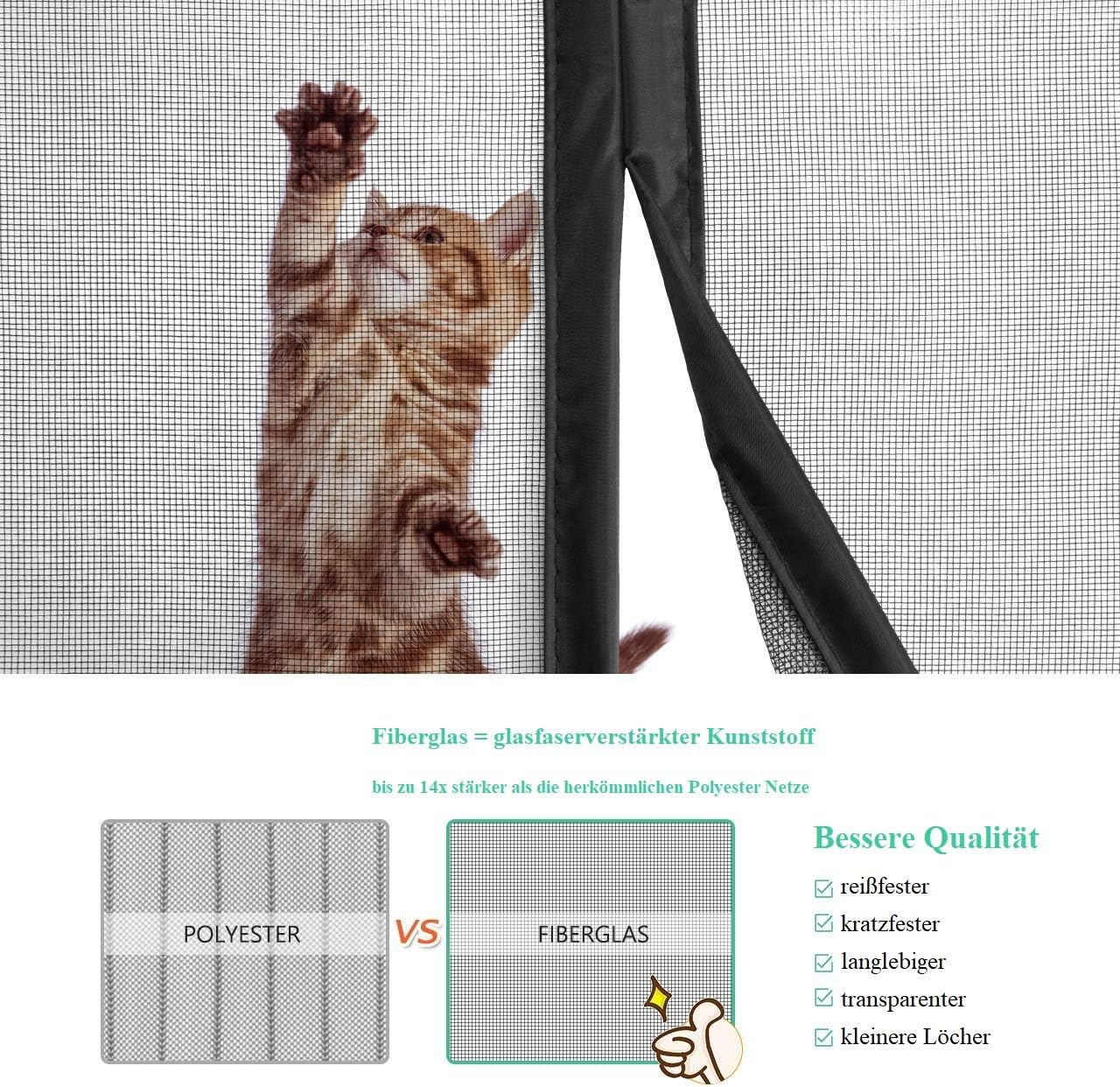 Die Door Easy Magnetvorhang Fliegengittertür (110x200 cm) gewährleistet einen zuverlässigen Insektenschutz durch feinmaschiges, verstärktes Kunststoffgewebe. Die Installation ist simpel und ohne Bohren mittels Klettband und Reissnägeln möglich, was sie ideal für Mietwohnungen macht. Der selbstschliessende Mechanismus durch integrierte Magnete und zusätzliche Windstabilität durch beschwerte Säume sorgen für Komfort und Haltbarkeit.