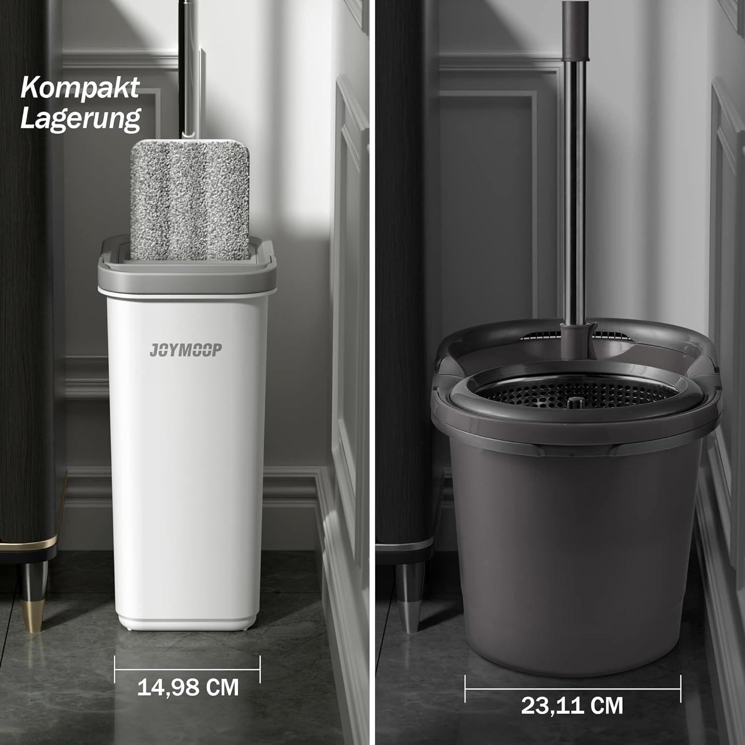 Das Mopp- & Eimer-Set eignet sich für die Bodenpflege. Der weisse Eimer hat ein Volumen von 5,6 Litern und besteht aus robustem Polypropylene. Der ausziehbare Mopp ermöglicht ein Selbstauswringen, und der rostbeständige, verstellbare Griff aus Edelstahl trägt zur Langlebigkeit des Produkts bei. Die drei waschbaren Mikrofaserpads sind effizient bei der Reinigung und sollten alle 1-2 Monate ersetzt werden. Im Lieferumfang enthalten sind ein Eimer, ein verstellbarer Griff aus Edelstahl, ein Mopp mit drei waschbaren Mikrofaser-Pads und zwei Ersatzpads.