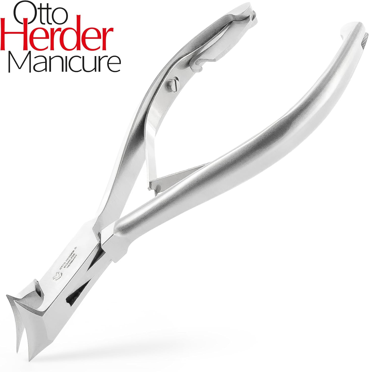 Die Otto Herder Nagelzange ist ein hochwertiger Kopfschneider aus Edelstahl, speziell designt für die Pflege starker und anspruchsvoller Fussnägel. Auf 14 cm Gesamtlänge bietet das Instrument eine 2 cm lange Schnittfläche, optimal um auch dicke und eingewachsene Zehennägel effektiv zu behandeln. Die Schenkeleinrastsperre ermöglicht eine einfache Handhabung ohne grossen Kraftaufwand, während die präzisen Spitzen auch schwer zugängliche Nagelecken erreichen. Der glatte Griff liegt dabei sicher in der Hand, sodass ein kontrolliertes Kürzen der Nägel für Rechts- wie Linkshänder gleichermassen gewährleistet ist.