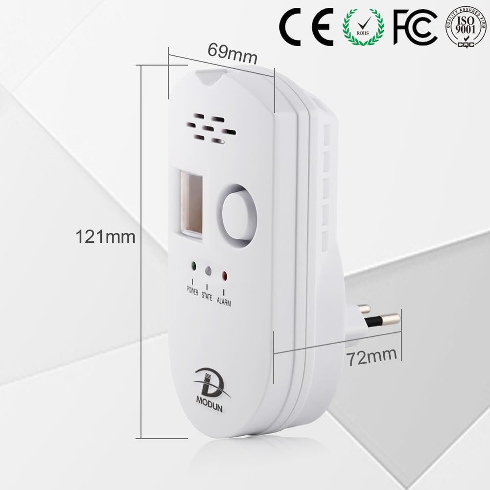 Der D MODUN Gasmelder ist ein unverzichtbares Sicherheitsgerät für jede Umgebung, in der brennbare Gase genutzt oder gelagert werden. Mit seiner hochmodernen Sensorik dient der Melder zur Detektion von LPG (Flüssiggas bestehend aus Propan und Butan), Erdgas (hauptsächlich Methan) sowie von Stadtkohlegas, einer Mischung aus Alkanen, Olefinen und Aromaten. Die Fähigkeit, Lecks dieser Gase zu erkennen, trägt massgeblich zum Schutz von Personen und Eigentum bei, beispielsweise in Küchen, Krankenhäusern, Garagen oder Industrieanlagen. Bei einer normalen Situation wird auf der LED Digitalanzeige eine Null dargestellt. Sollte jedoch ein Leck von brennbarem Gas detektiert werden, erfolgt eine Anzeige von Zahlen zwischen 1 und 9 sowie dem Buchstaben A auf dem Bildschirm, gepaart mit einem visuellen Alarm in Form eines rot blinkenden Signals. In Kombination mit dem akustischen Alarm von mindestens 85 Dezibel macht der Melder sofort auf sich aufmerksam, sobald die Gaskonzentration über 3 % der unteren Explosionsgrenze (UEG) steigt. Die Alarmzustände variieren dabei je nach gemessener Gaskonzentration. Durch seine einfache Handhabung mit dem standardisierten europäischen Steckerdesign ist der Gasmelder Plug-and-Play-fähig und kann ohne zusätzliche Adapter oder Konverter direkt an herkömmlichen Steckdosen betrieben werden. Die Energieeffizienz wird durch einen geringen Verbrauch von unter 2 Watt zusätzlich unterstrichen, was zu einer beträchtlichen Energieeinsparung führt. Im Lieferumfang enthalten sind neben dem Gasmelder selbst ein Benutzerhandbuch, das die Handhabung des Geräts erläutert, sowie die Halbleitergas-Sensoren, welche eine genaue Erfassung der Gaswerte ermöglichen. Mit einer Betriebsspannung von AC100V bis AC240V sowie einer Frequenz von 50/60Hz ist der Melder auch international einsetzbar. Die Arbeitsumgebung für den Gasmelder ist mit einem Temperaturbereich von -10°C bis 50°C angegeben, was seine Flexibilität und Zuverlässigkeit zusätzlich unterstreicht.
