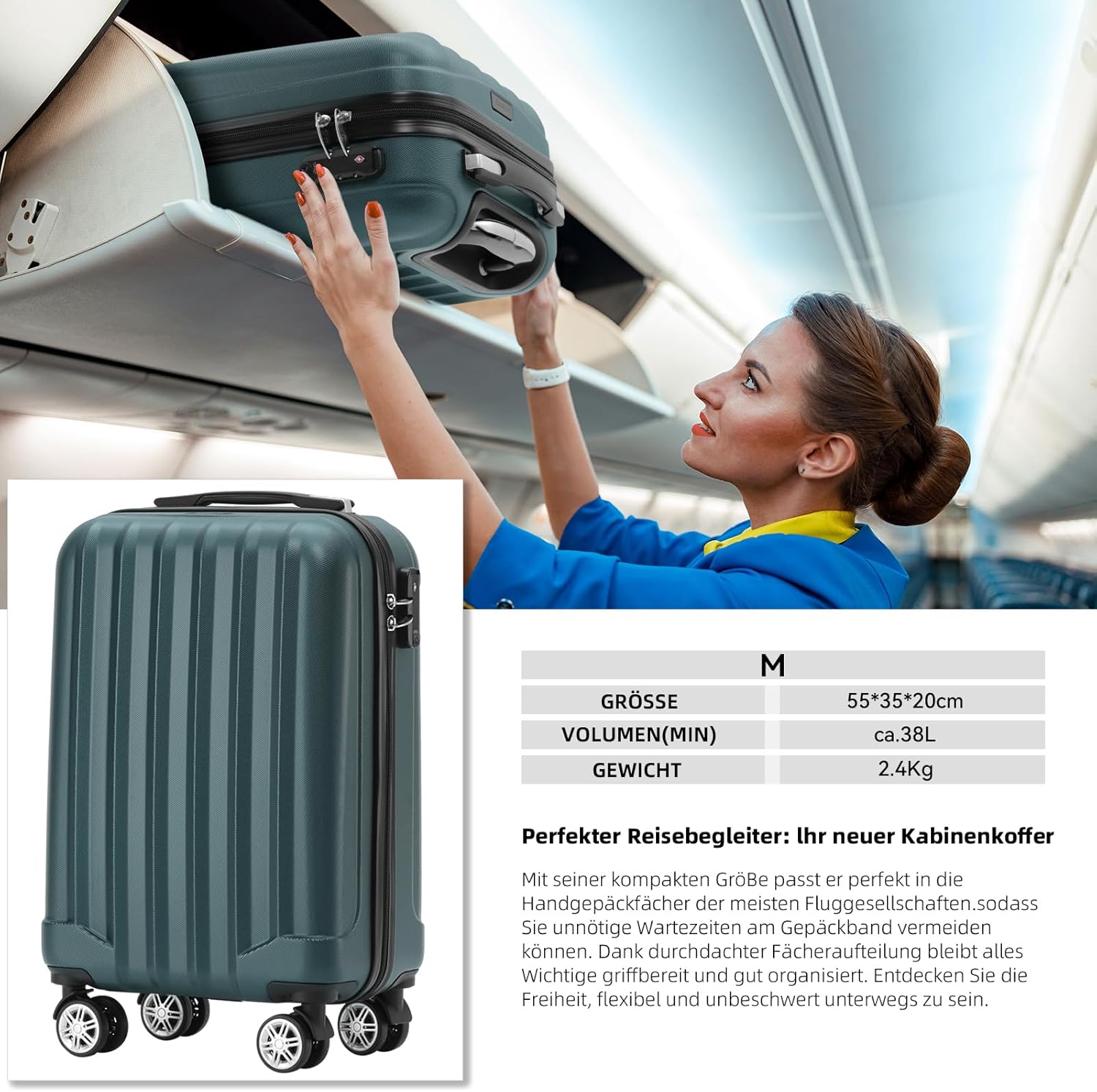 Der BEIBYE 2080 Handgepäckkoffer in Dunkelgrün verbindet Funktionalität mit Stil und eignet sich perfekt für Vielflieger, die Wert auf Komfort und Sicherheit legen. Mit seiner Airline-konformen Dimension von 55 x 38 x 23 cm aussen und praktischen 45 x 30 x 20 cm innen, bei einem Leichtgewicht von 3 Kilogramm, bietet dieser Rollkoffer ein Volumen von rund 45 Litern. Das integrierte doppelte TSA-Schloss schützt den Inhalt zuverlässig, während die 360° drehbaren Zwillingsrollen ein flüssiges Navigieren durch belebte Flughäfen ermöglichen. Die robuste ABS-Hartschale widersteht selbst den härtesten Reisebedingungen, was den BEIBYE Koffer zum idealen Begleiter für jede Reise macht.