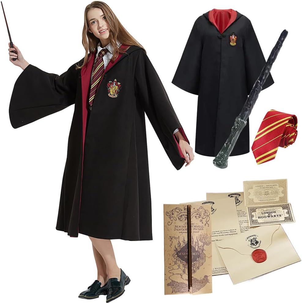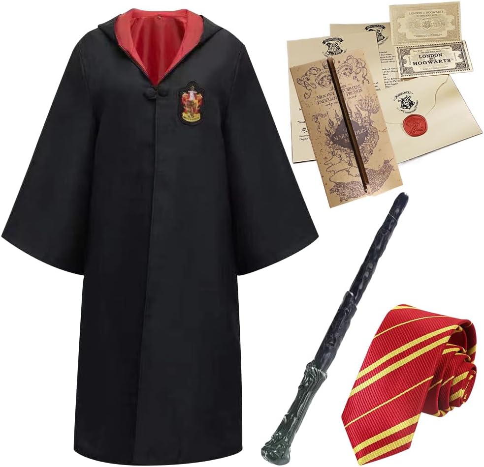 Das NAVESO Kostüm Harry bietet eine detailgetreue Nachbildung der ikonischen Zauberertracht und entführt Kostümfans in die faszinierende Welt der Magie. Entworfen in Grösse M für eine Körpergrösse von 160 bis 170 cm, umfasst dieses erlesene Set eine Kapuzenrobe mit rotem Satinfutter und einfachem Knopfdesign, die durch präzise Nähte überzeugt. Ergänzt durch eine Krawatte, einen Zauberstab sowie weitere magische Accessoires wie Zulassungsbescheid, Karte des Rumtreibers und Bahnsteigkarte, ist das Kostüm ideal für eine Vielzahl von Anlässen, darunter Halloween-Feste, Karnevalsfeiern und Mottopartys. Eine geheime Zauberstabtasche birgt eine weitere Überraschung.