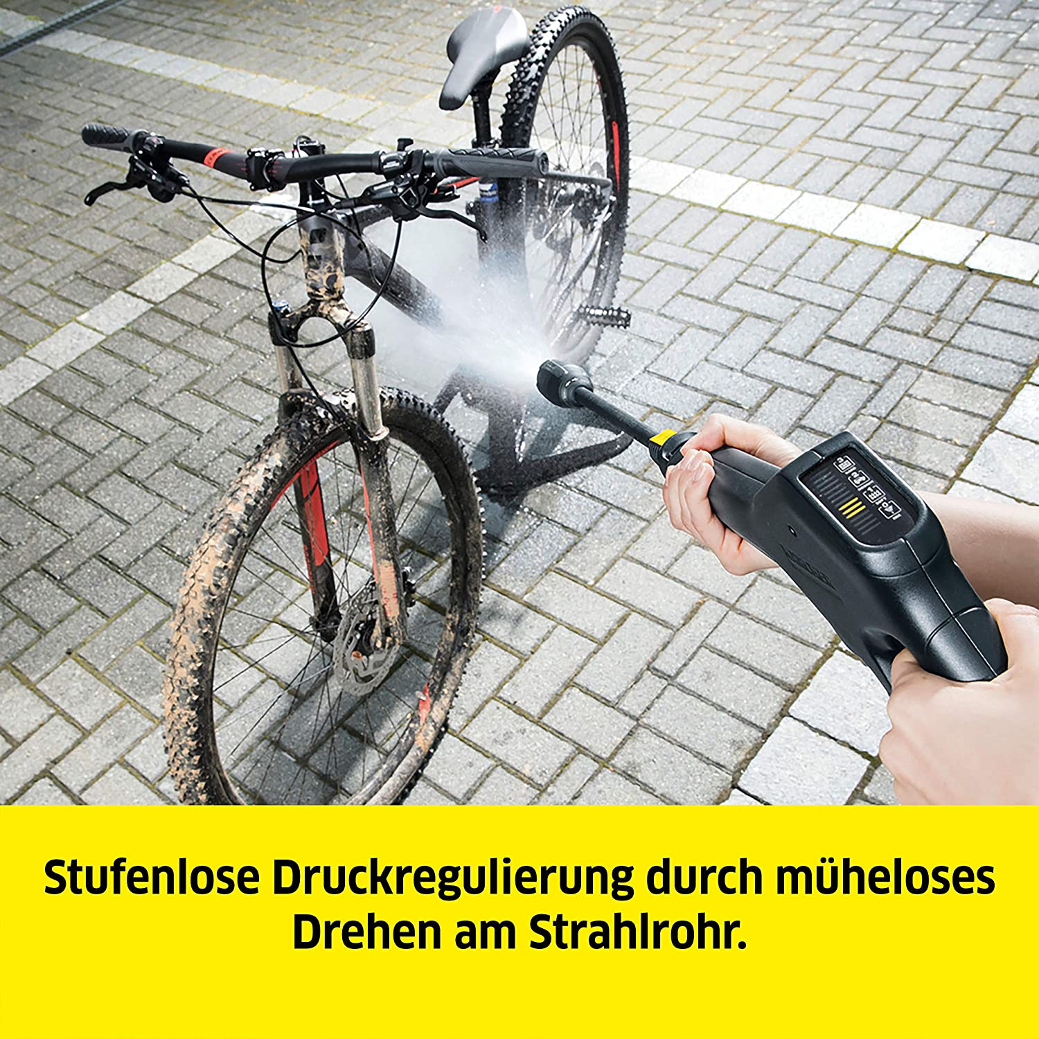 Dank des praktischen Anwendungsberaters in der Home & Garden App, die den K 3 Power Control-Hochdruckreiniger unterstützen kann, ermöglicht Kärcher ein noch besseres Reinigungsergebnis - und macht den Nutzer zum Reinigungsexperten. Zudem bietet die App einen Rundumservice inklusive Infos zum Gerät, der Anwendung und dem Kärcher Serviceportal. Die richtige Druckstufe lässt sich am mitgelieferten Strahlrohr einstellen und an der Anzeige der Pistole überprüfen - für maximale Kontrolle und den idealen Druck bei jeder Oberfläche. Das Reinigungsmittel lässt sich über den integrierten Reinigungsmitteltank schnell, einfach und komfortabel aufbringen. Weiter überzeugt der K 3 Power Control von Kärcher mit einem ausziehbaren Teleskopgriff für bequemes Ziehen und Verstauen, einem Standfuss für mehr Stabilität, Halterungen für Zubehöre, Hochdruckpistole und Kabel sowie dem Kärcher Quick Connect-System. Der Standfuss kann auch als Tragegriff verwendet werden, wodurch sich das Gerät ganz leicht verstauen und verladen lässt. Das Home Kit gewährleistet eine spritzfreie Reinigung grösserer Flächen rund ums Haus und beinhaltet den Flächenreiniger T 5 sowie 1 l Steinreiniger 3-in-1.