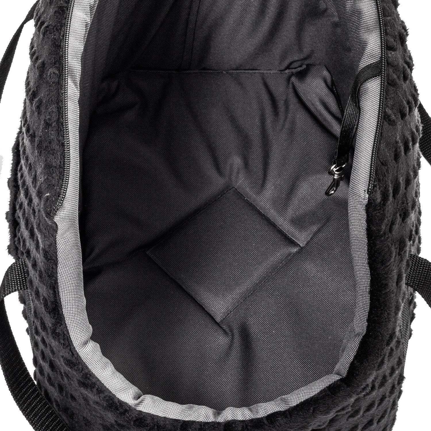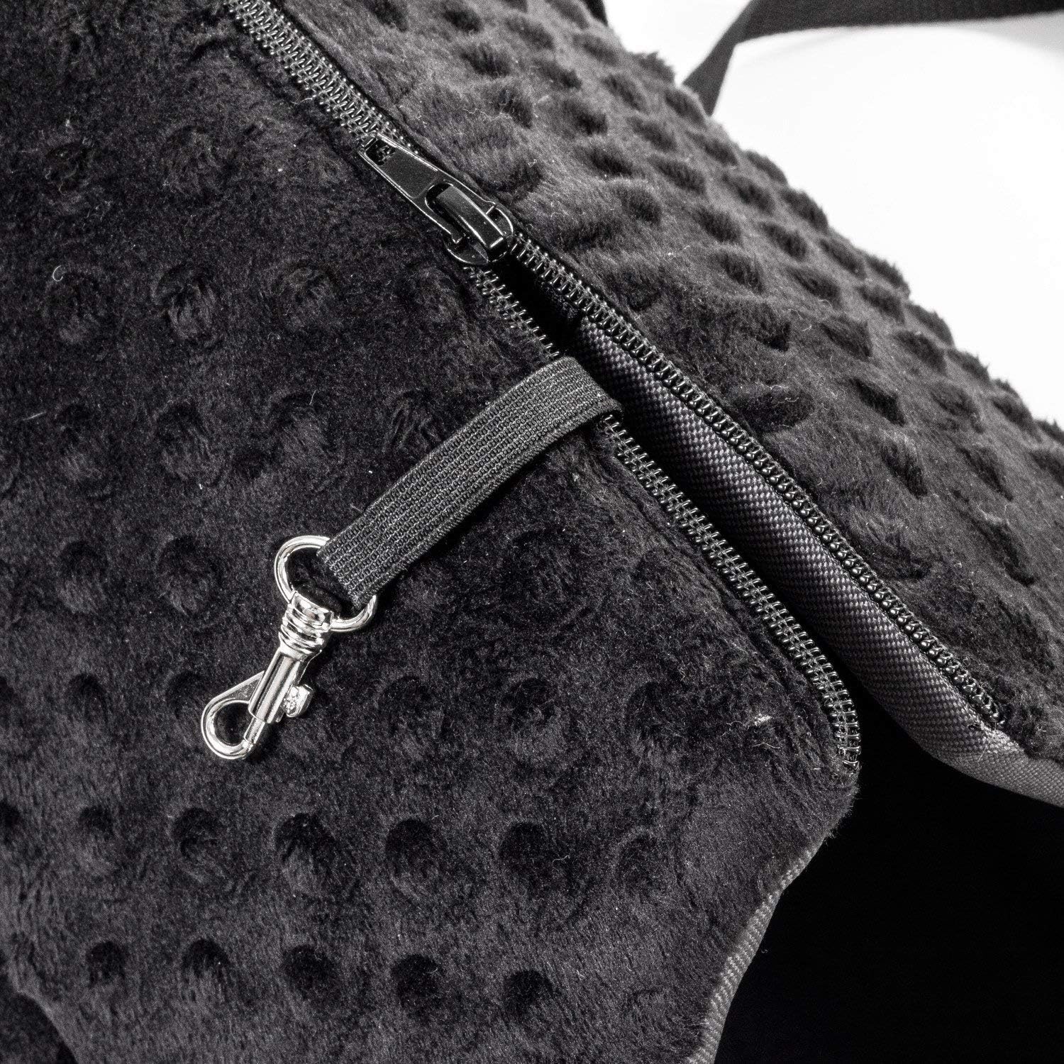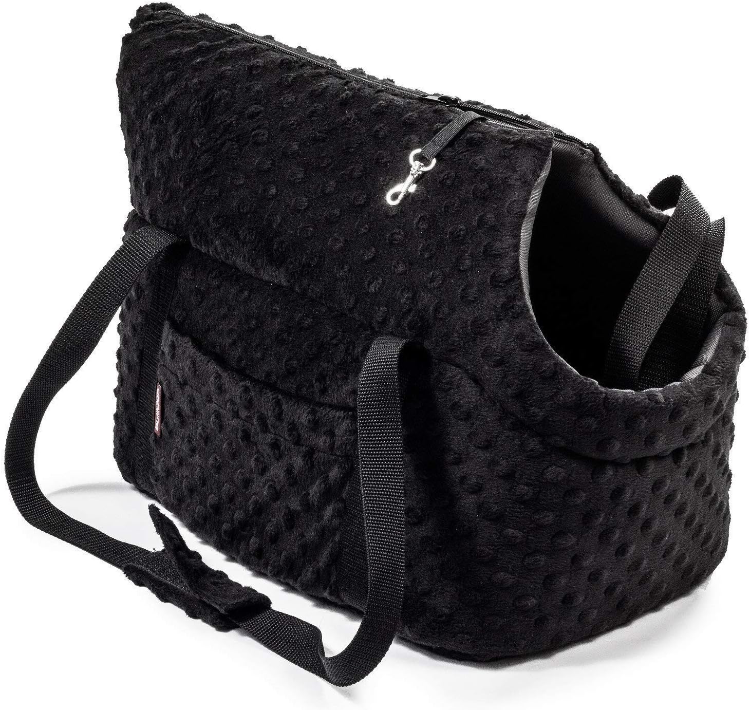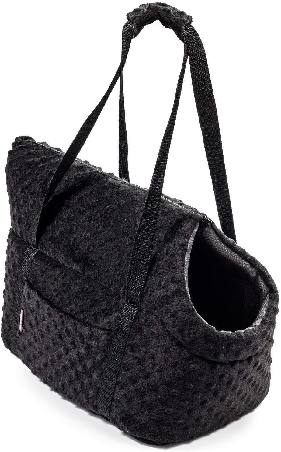 Die Hundetasche in Schwarz (Minky) ist ideal für den Transport kleiner und mittlerer Hunde, Welpen und Katzen. Hergestellt aus strapazierfähigem Polyester, bietet sie eine maximale Belastbarkeit von 5 kg und gewährleistet Sicherheit und Komfort für das Haustier während der Reise. Die Tragetasche ist mit einem Reissverschluss ausgestattet und verfügt über eine praktische Seitentasche für Accessoires, die zusätzlichen Stauraum bietet. Die gepolsterte Innenausstattung sorgt für Bequemlichkeit, während das Material leicht zu reinigen und zu verstauen ist.