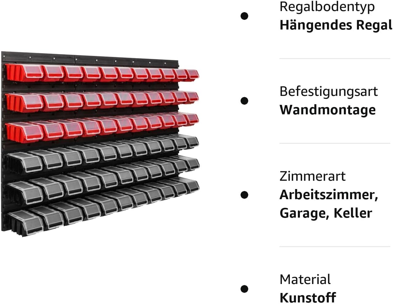 Das Lagersystem von SimpleThing ist eine praktische und effiziente Lösung, um Ordnung und Übersichtlichkeit in Werkstätten, Garagen oder anderen Arbeitsbereichen zu schaffen. Gefertigt aus robustem Polypropylen, besticht es durch seine Widerstandsfähigkeit gegen Feuchtigkeit, extreme Temperaturen und Chemikalien sowie mechanische Einwirkungen. Das System ist in einem ansprechenden Farbmix aus Schwarz und Rot gehalten und passt sich stilvoll den unterschiedlichsten Umgebungen an. Charakteristisch für die Durchdachtheit dieses Produktes ist die modulare Erweiterbarkeit. Durch Hinzufügen von Wandplatten, Werkzeugständern, Haltern oder weiteren Boxen lässt sich das System flexibel an den vorhandenen Raum und die individuellen Bedürfnisse anpassen. Der Aufbau von insgesamt sechs Wandplatten mit den Massen 386 x 390 mm resultiert in einer Gesamtgrösse von 1158 x 780 mm, was eine beachtliche Fläche zur Werkzeuglagerung bietet. Die mitgelieferten 66 Stapelboxen, jeweils 33 in Rot und 33 in Schwarz, mit den Massen 100 x 155 x 70 mm bieten ausreichend Raum für Kleinteile und Werkzeuge. Jede Box kann mit einem Etikett für die Inhaltsbeschriftung versehen werden, was die Organisation und das schnelle Auffinden von Gegenständen erheblich erleichtert. Mit einem Gesamtgewicht von 7 kg ist dieses System leicht zu montieren und bietet dennoch eine stabile und langlebige Aufbewahrungslösung, die für weniger Stress und mehr Effizienz bei der Arbeit sorgt.