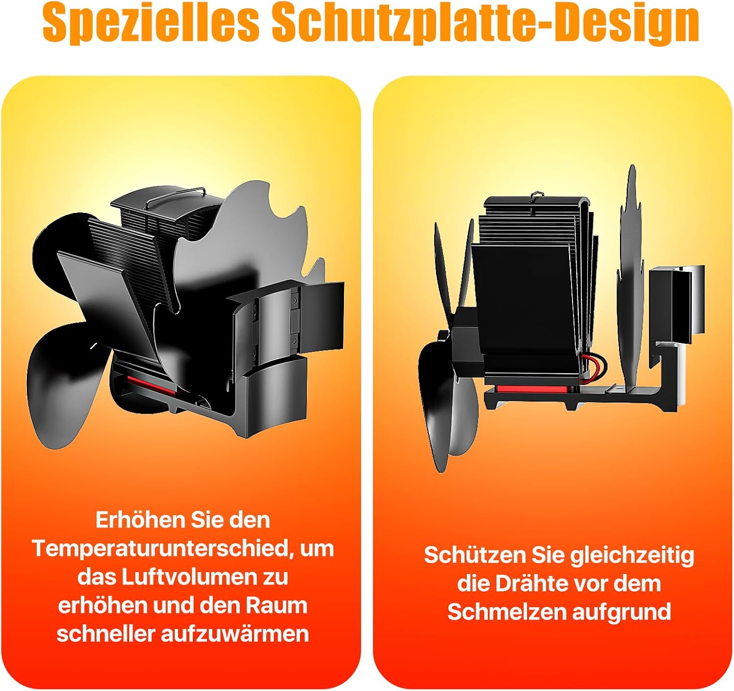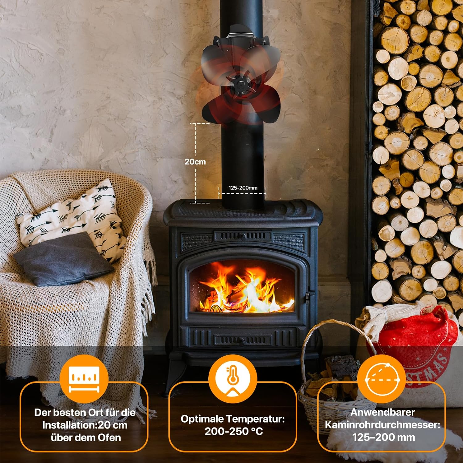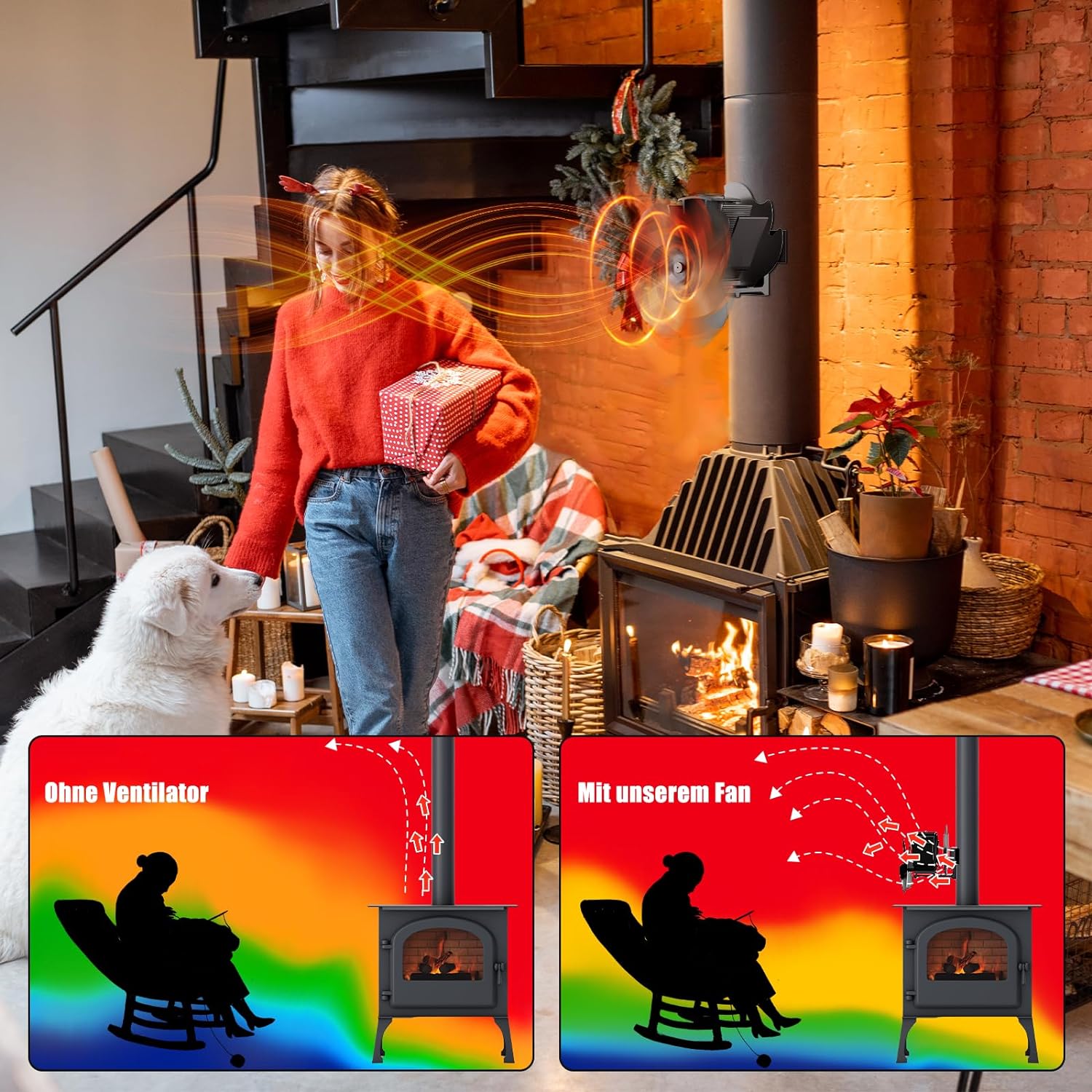 Der Signstek Kaminventilator stellt eine umweltfreundliche und effiziente Methode dar, Wärme in Räumen mit einem Kaminofen oder einer Feuerstelle gleichmässig zu verteilen. Dieses innovative Gerät funktioniert stromlos, angetrieben durch die Hitze des Ofens, und eignet sich für Ofenrohre mit einem Durchmesser von 12.5 bis 20 cm. Die eloxierten Aluminiumflügel und die magnetische Montagebasis des Ventilators zeugen von einer konzeptionellen Langlebigkeit; sie sind rostfrei, verschleissfest und gewährleisten eine gute Wärmeleitung. Der Ventilator, der sich durch einen extrem leisen Betrieb mit weniger als 25 dB auszeichnet, besitzt zudem ein Hitzeschild für eine gesteigerte Effizienz. Der mitgelieferte Eisenring ermöglicht zudem eine problemlose Montage auf nichtmagnetischen Oberflächen.