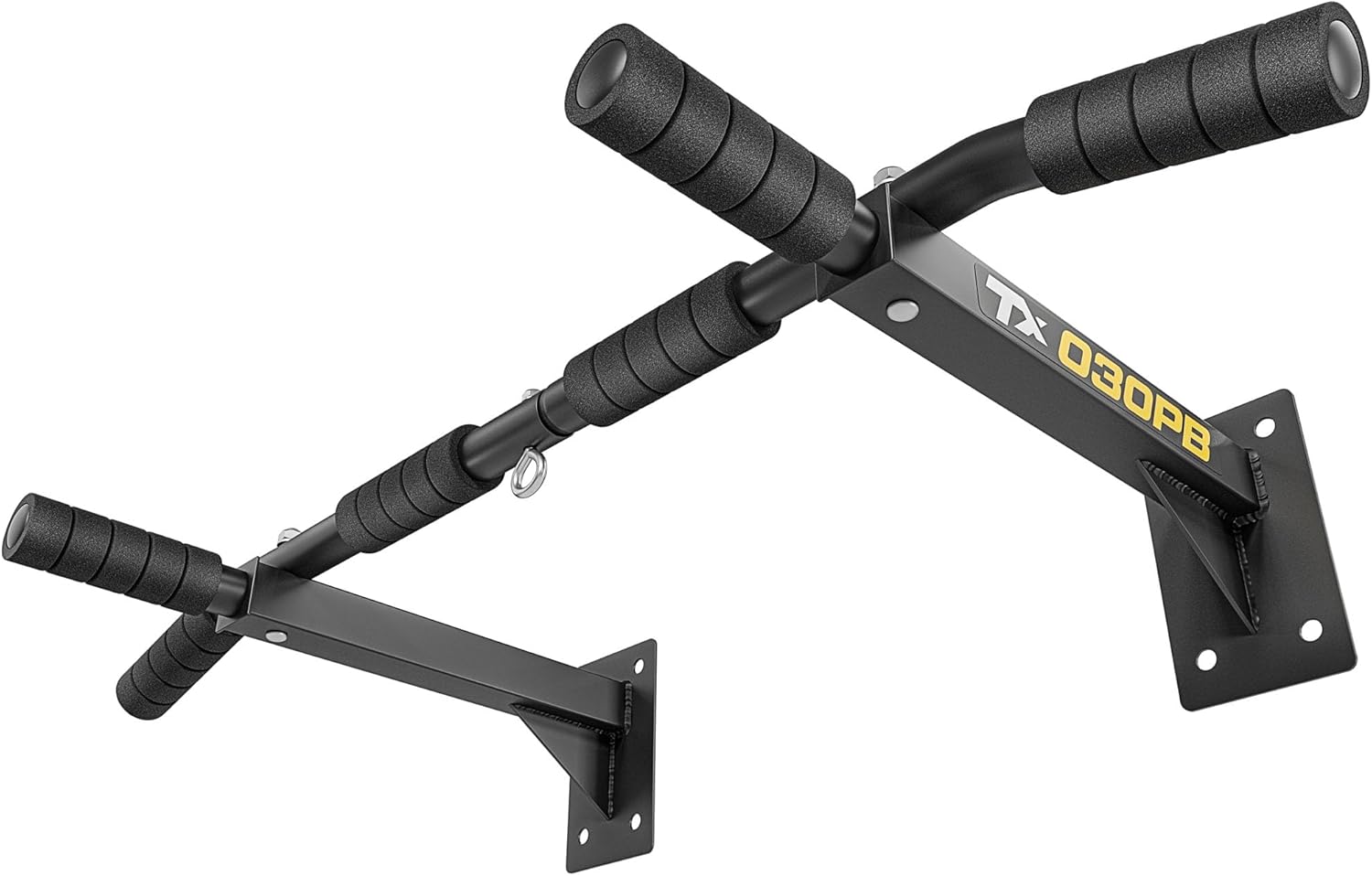 Die TREX SPORT Klimmzugstange TX-030PB besticht durch ihre robuste Stahlkonstruktion, welche für intensive Trainingseinheiten konzipiert ist. Diese Multigriff-Klimmzugstange mit sechs rutschfesten Griffen ermöglicht eine Vielzahl von Übungen zur Kräftigung der Arm-, Schulter-, Rücken- und Brustmuskulatur und ist mit bis zu 250 kg belastbar. Zusätzlich bietet die integrierte Öse eine Boxsack-Halterung, die ein abwechslungsreiches Boxsack-Training mit bis zu 150 kg erlaubt. Die Pull Up- und Dip-Stange lässt sich platzsparend an die Wand montieren, wobei Komfort durch die Schaumstoffgriffe gegeben ist.