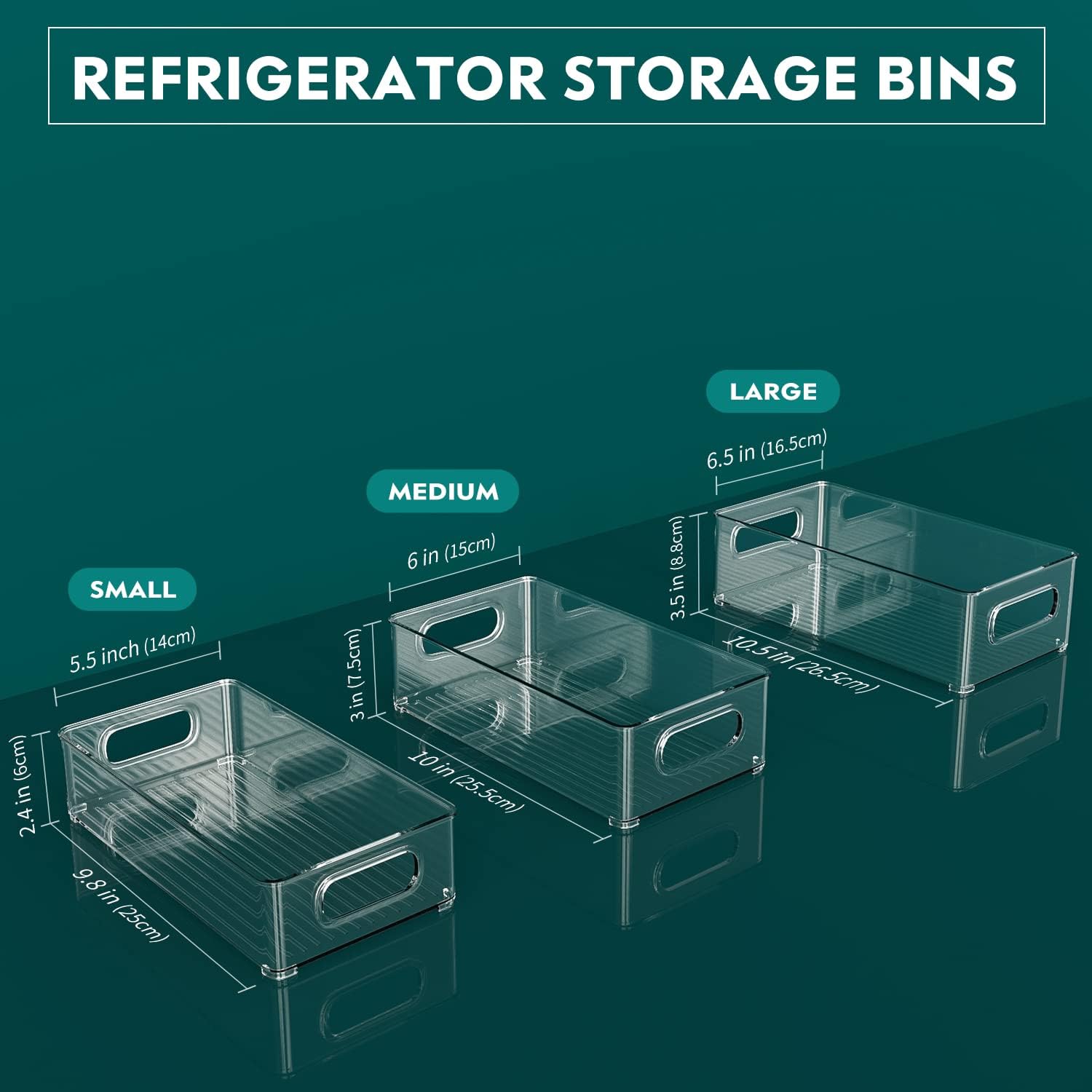 Dieses 9-teilige Set für Kühlschrank-Organizer enthält transparente Boxen mit Griffen, um eine ordentliche Aufbewahrung im Kühlschrank zu ermöglichen. Es ist stapelbar und bietet Platzersparnis in der Küche. Diese Aufbewahrungsbehälter sind vielseitig einsetzbar und eignen sich nicht nur für den Kühlschrank, sondern auch für Küchenschränke, Vorratskammern, Arbeitsplatten, Regale und Kleiderschränke. Hergestellt aus hochwertigem, BPA-freiem Polyethylen, sind sie robust und langlebig. Sie sind nicht für die Verwendung in der Spülmaschine geeignet. Im Set enthalten sind drei grosse Boxen mit einer Grösse von 26.5 x 16.5 x 8.8 cm, drei mittlere mit einer Grösse von 25.5 x 15 x 7.5 cm und drei kleine mit einer Grösse von 25 x 14 x 6cm.