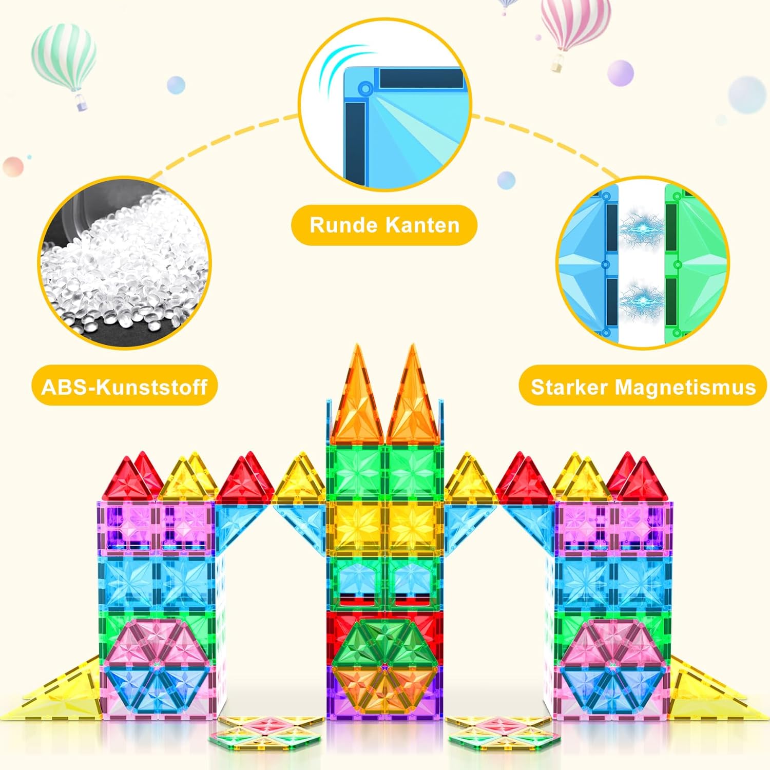 Die magnetischen Bausteine bestehen aus Acrylnitril-Butadien-Styrol und sind für den Einsatz in Vorschule, Kindergarten und Schule konzipiert. Die Bausteine sind für Kinder ab 36 Monaten geeignet und zeichnen sich durch ihre magnetischen Eigenschaften aus, die kreatives Spielen und Lernen fördern. Sie sind kindgerecht und langlebig, was sie zu einem sicheren Spielzeug für jüngere Kinder macht. Die Packung enthält insgesamt 42 Einzelteile.