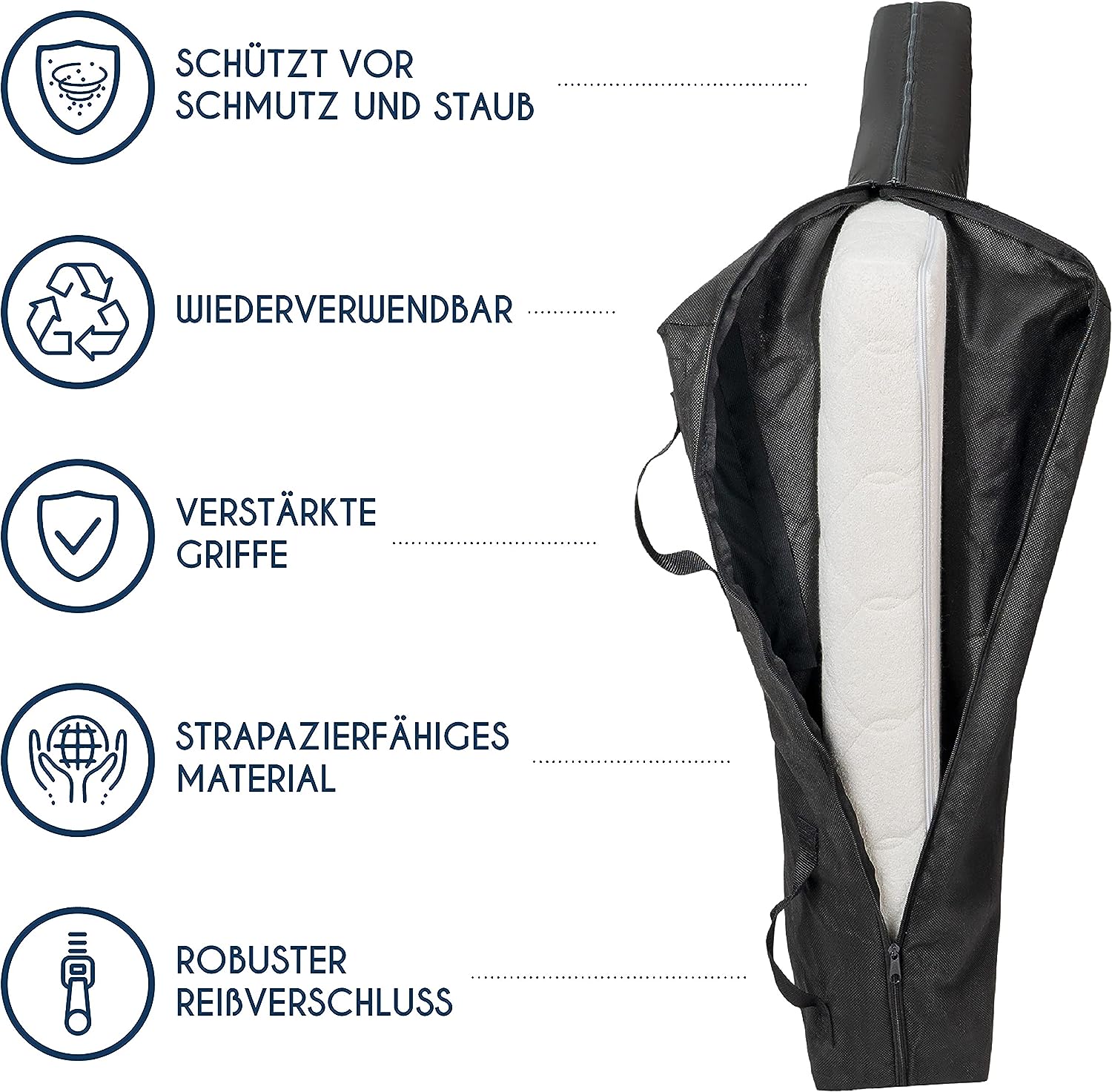 Die Matratzenhülle 180x200 cm von Dreamzie ist die perfekte Lösung für den Schutz Ihrer Matratze während Lagerung und Umzug. Der praktische Reissverschluss ermöglicht ein einfaches Ein- und Auspacken und sorgt für einen sicheren Verschluss. Diese Aufbewahrungstasche ist robust, langlebig und ideal für den langfristigen Gebrauch.