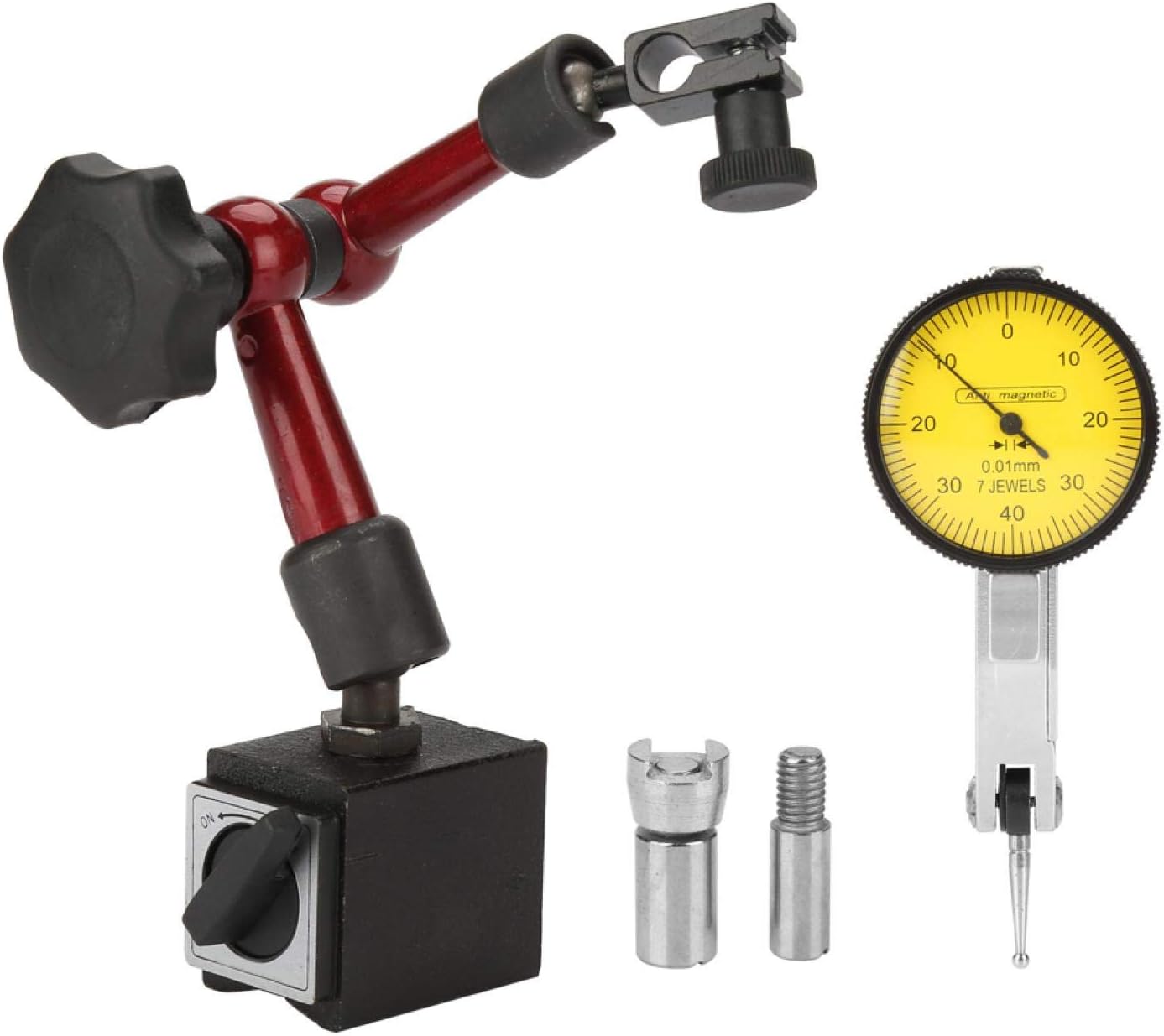 Die Heayzoki Messuhr mit Magnetständer-Basishalter ist ein präzises Instrument zur Ermittlung von Oberflächenschwankungen und zeichnet sich durch ihre Flexibilität in der Anwendung aus. Dank eines starken Permanentmagneten kann die Hebel-Messuhr sicher an Werkzeugmaschinen befestigt werden, während sich der flexible Arm jedem Winkel anpasst, für einfache und effiziente Bedienung. Die robuste Konstruktion erleichtert Wartung und Handhabung, während die Basis durch die geschickte Ein- und Ausschaltfunktion ohne Reaktionskraft verschoben werden kann, wodurch Beschädigungen am Messgerät und der Arbeitsfläche vermieden werden. Mit einem Messbereich von 0 bis 0,8 mm und einer Auflösung von 0,01 mm, verpackt in einem Gewicht von 530 Gramm, ist dieses Instrument sowohl für feine Messaufgaben als auch für den anspruchsvollen industriellen Einsatz geeignet.