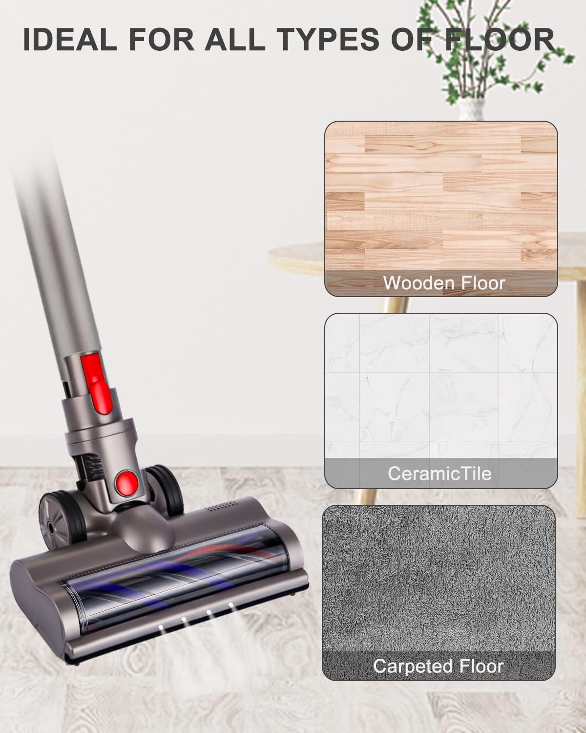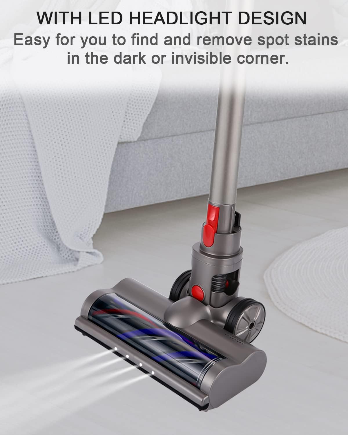 Der NEFLSI Bürstenkopf, kompatibel mit den Dyson-Modellen V7, V8, V10, V11 und V15, revolutioniert die Bodenreinigung. Die Elektrobürste entfernt Staub effizient und ist für eine Vielzahl von Bodenbelägen, einschliesslich Laminat, Fliesen und Teppichen geeignet. Die abnehmbare Walze erleichtert das Entfernen und Waschen, während 4 LED-Frontlichter selbst die dunkelsten Ecken erhellen. Der schwenkbare Staubsaugerkopf verspricht eine flexible Handhabung.