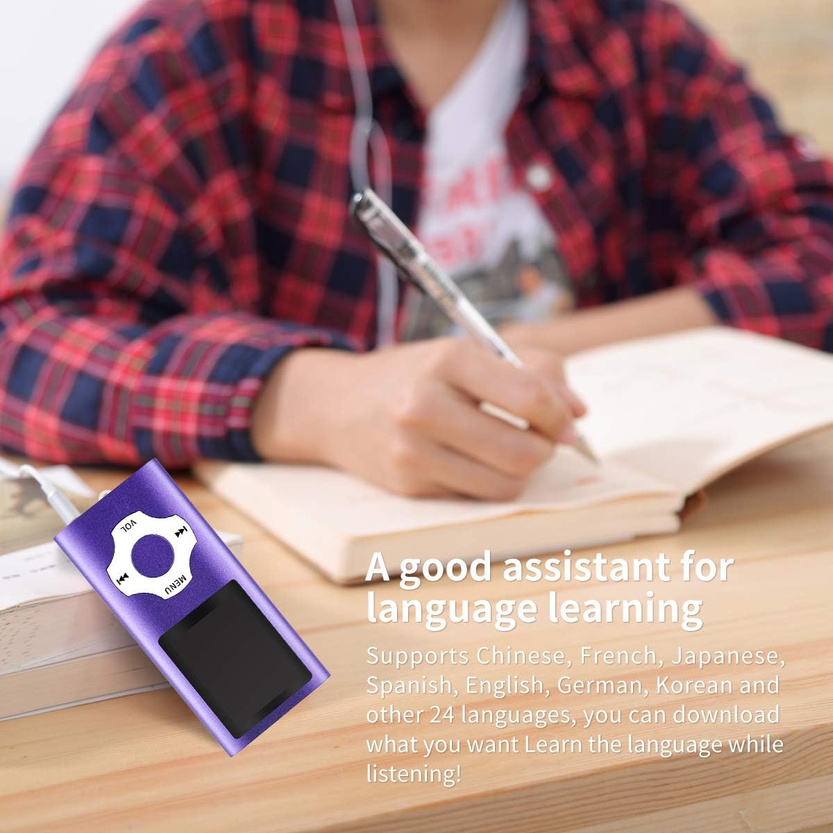 Der MP3/MP4-Player in der Farbe Lila ist mit einem 1,8-Zoll-LCD-Bildschirm ausgestattet. Ein Memory-Karten-Slot unterstützt Speicherkarten mit einer Kapazität von bis zu 128 GB. Die Energieversorgung erfolgt durch eine Lithium-Ionen Batterie, die eine zuverlässige Nutzung gewährleistet. Zum Lieferumfang gehören ein USB-Kabel und Kopfhörer.