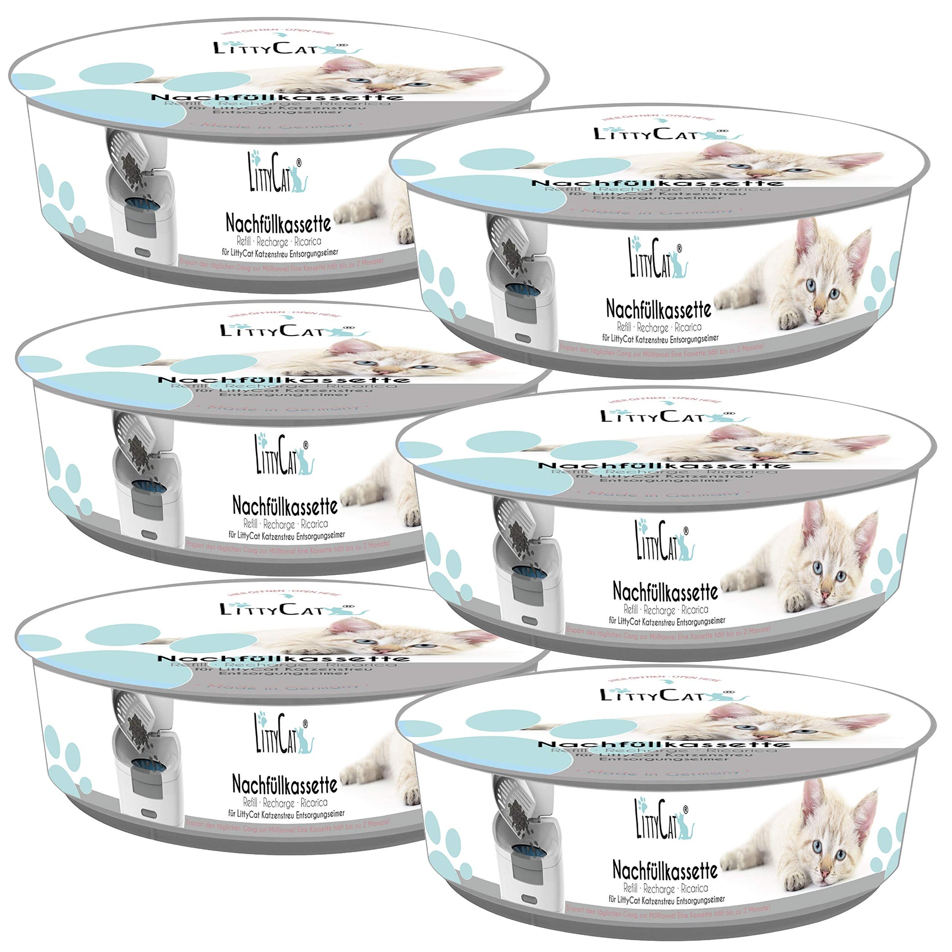 Die Nachfüllkassetten aus Kunststoff für den Littycat Katzenstreu Entsorgungseimer eignen sich dafür, unangenehme Gerüche zu vermeiden. Dank der mehrschichtigen Folientechnologie schützen sie gegen unerwünschte Gerüche. Mit einer Nachfüllkassette können Haushalte mit einer Katze bis zu 2 Monate lang auskommen. Der Lieferumfang beträgt 6 Stück.