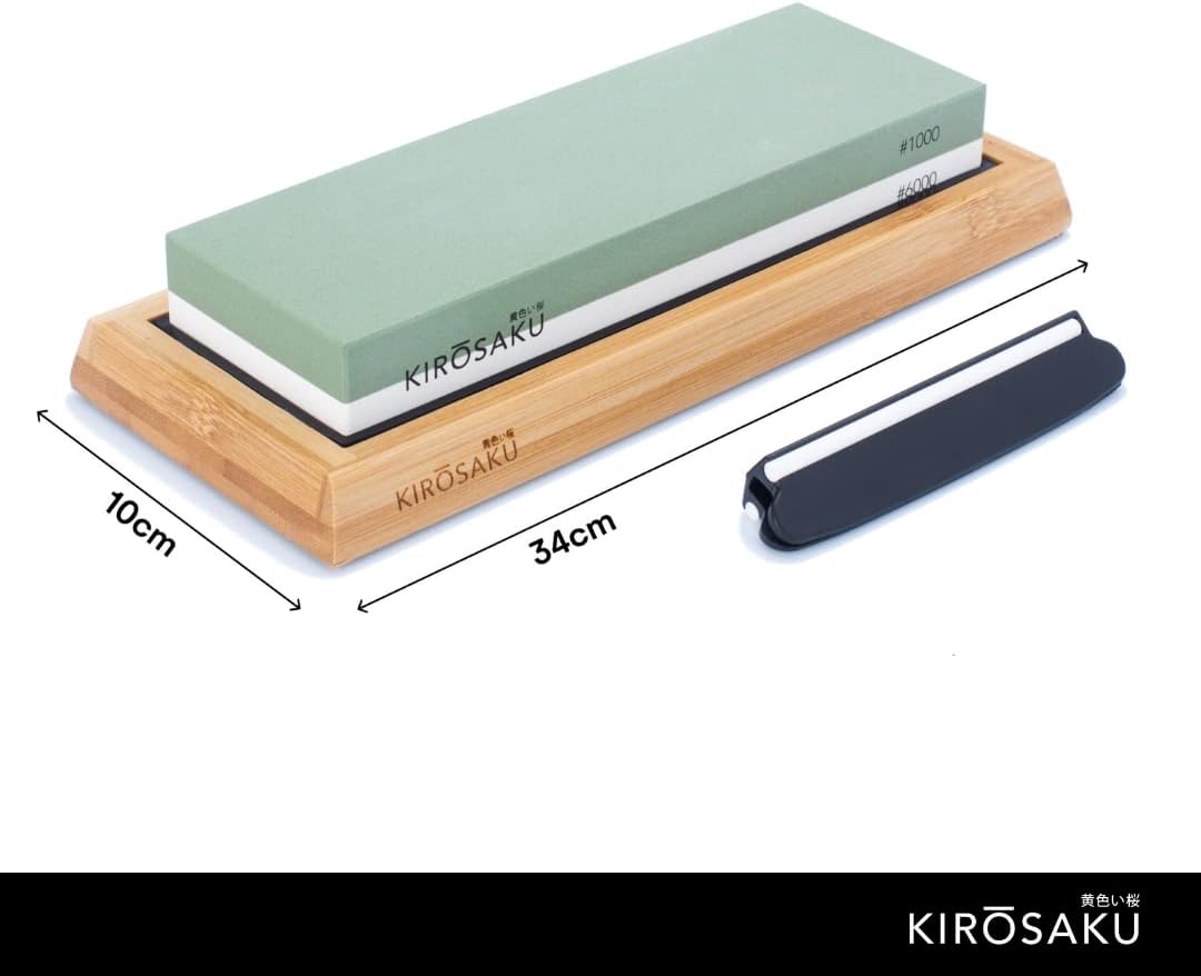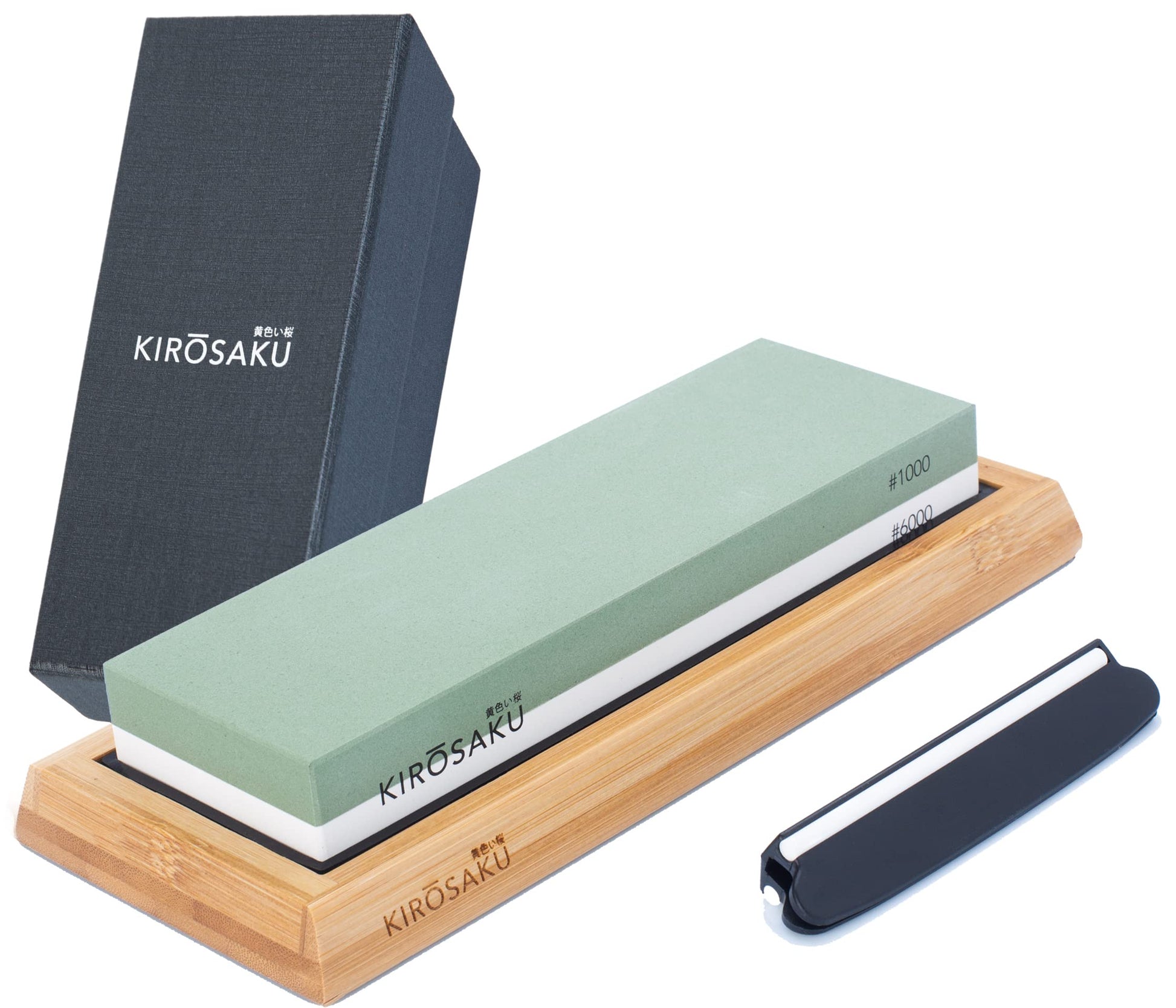 Der Premium Schleifstein von Kirosaku dient als Messerschärfer. Er hat eine Körnung von 1000/6000 und kommt in den Farben Grün und Weiss. Das Produkt zeichnet sich durch seinen rutschfesten Silikonhalter aus und enthält eine Bambus-Halterung (34 x 10 cm), die ebenfalls eine rutschfeste Unterfläche hat, um eine sichere Verwendung zu gewährleisten. Das Produkt verfügt zudem über eine Schärfhilfe.