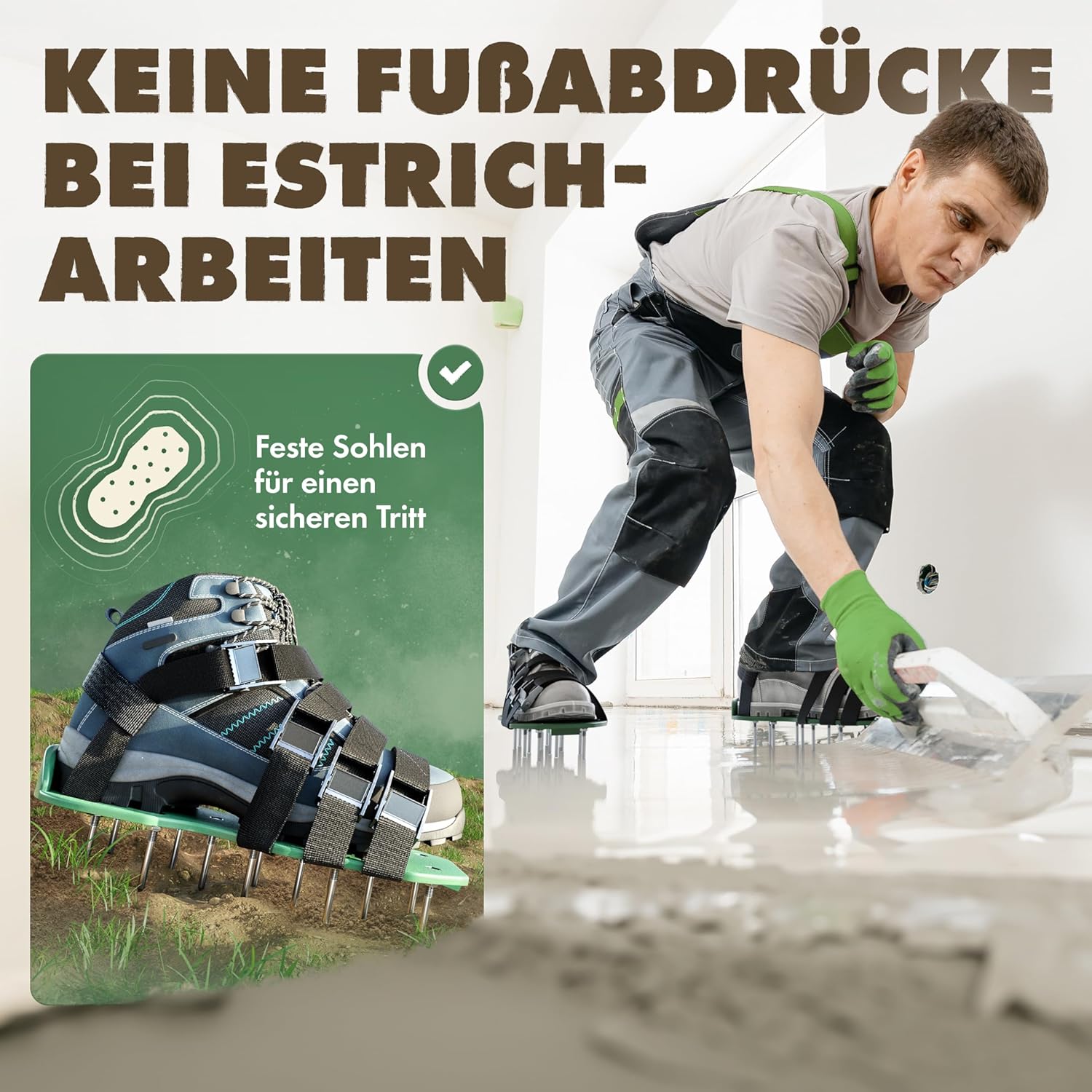 Die LAINFELD Rasenlüfter Nagelschuhe bieten eine effiziente Lösung zur Verbesserung der Rasenqualität. Ausgestattet mit zwei Varianten von Nägeln, ermöglichen sie eine individuelle Anpassung an diverse Bodenarten. Kurze Nägel durchdringen verdichteten Boden, während lange Nägel sich für weichere Untergründe eignen. Stabilität wird durch vier kräftige Riemen mit Metallverschlüssen und zusätzlichen Hackenriemen gewährleistet. Neben der Nutzung für die Rasenpflege eignen sie sich aufgrund ihrer Robustheit auch hervorragend für Estricharbeiten und Bodenbearbeitungen. Diese Lüftungsschuhe sind für ein breites Spektrum an Schuhgrössen von 38 bis 46 konzipiert und bieten eine umweltfreundliche Alternative zu motorisierten Geräten, ideal für einen gesunden und kräftigen Rasen.