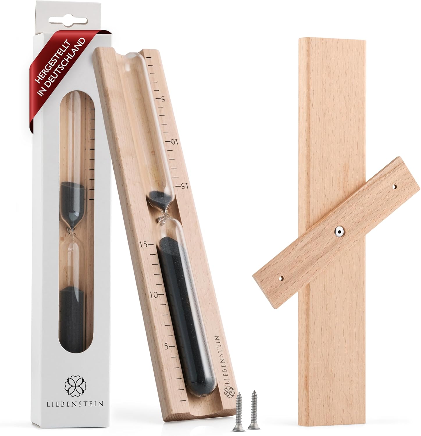 Die Liebenstein Sauna Sanduhr aus Buchenholz besticht durch ihre Langlebigkeit und ihr modernes Design. Diese Saunauhr misst präzise 15 Minuten Zeit und garantiert dadurch eine zuverlässige Zeitmessung. Die gut lesbare Anzeige mit schwarzem Sand und die einfache Montage, inklusive aller benötigten Materialien, machen sie zu einer hochwertigen Bereicherung für jedes Saunaerlebnis.