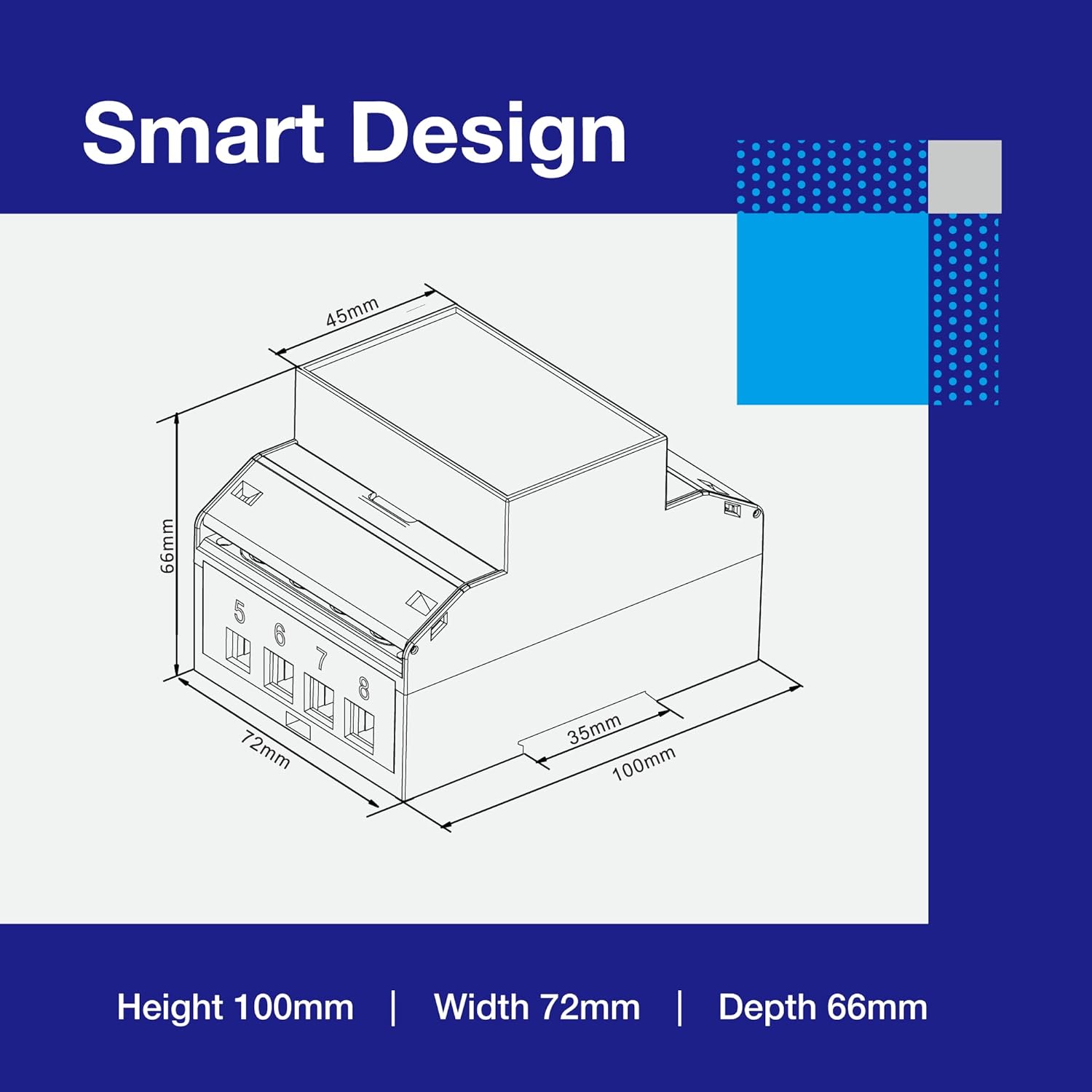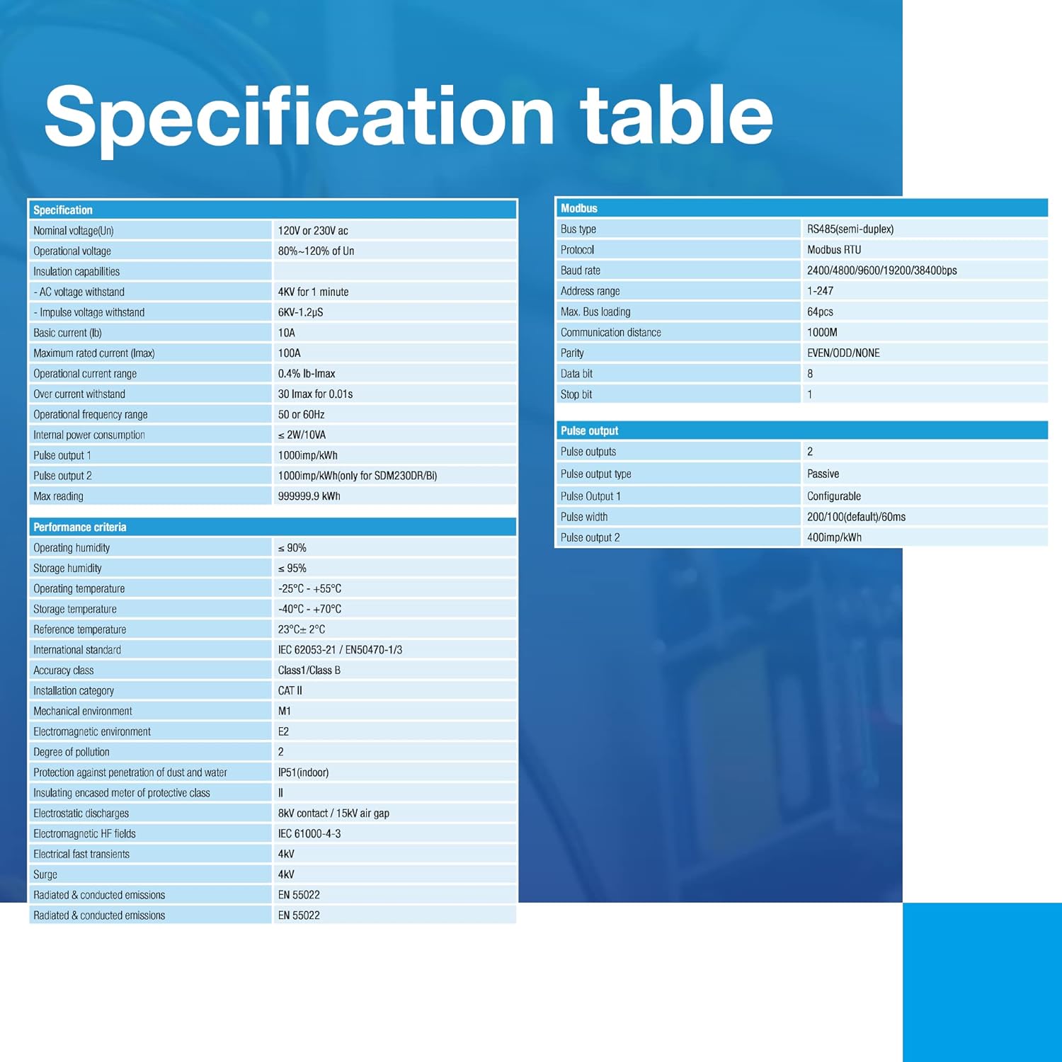 Der Energiezähler ist als intelligenter Zähler mit einer Vielzahl von Messoptionen einsetzbar. Die Messoptionen sind entweder 3-phasig, 4-Leiter, 3-phasig, 3-phasig, 3-Leiter oder 1-phasig, 2-Leiter. Der Zähler verfügt über 2 x S0 und Modbus RS485 Schnittstellen, welche sich für Solaralgen oder Elektroautos eignen. Er fungiert als Zweirichtungszähler für Dreh- und Wechselstrom. Er ist LCD beleuchtet (3 x 230 V/400 V AC).