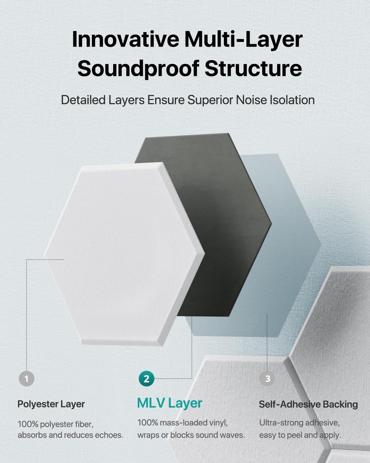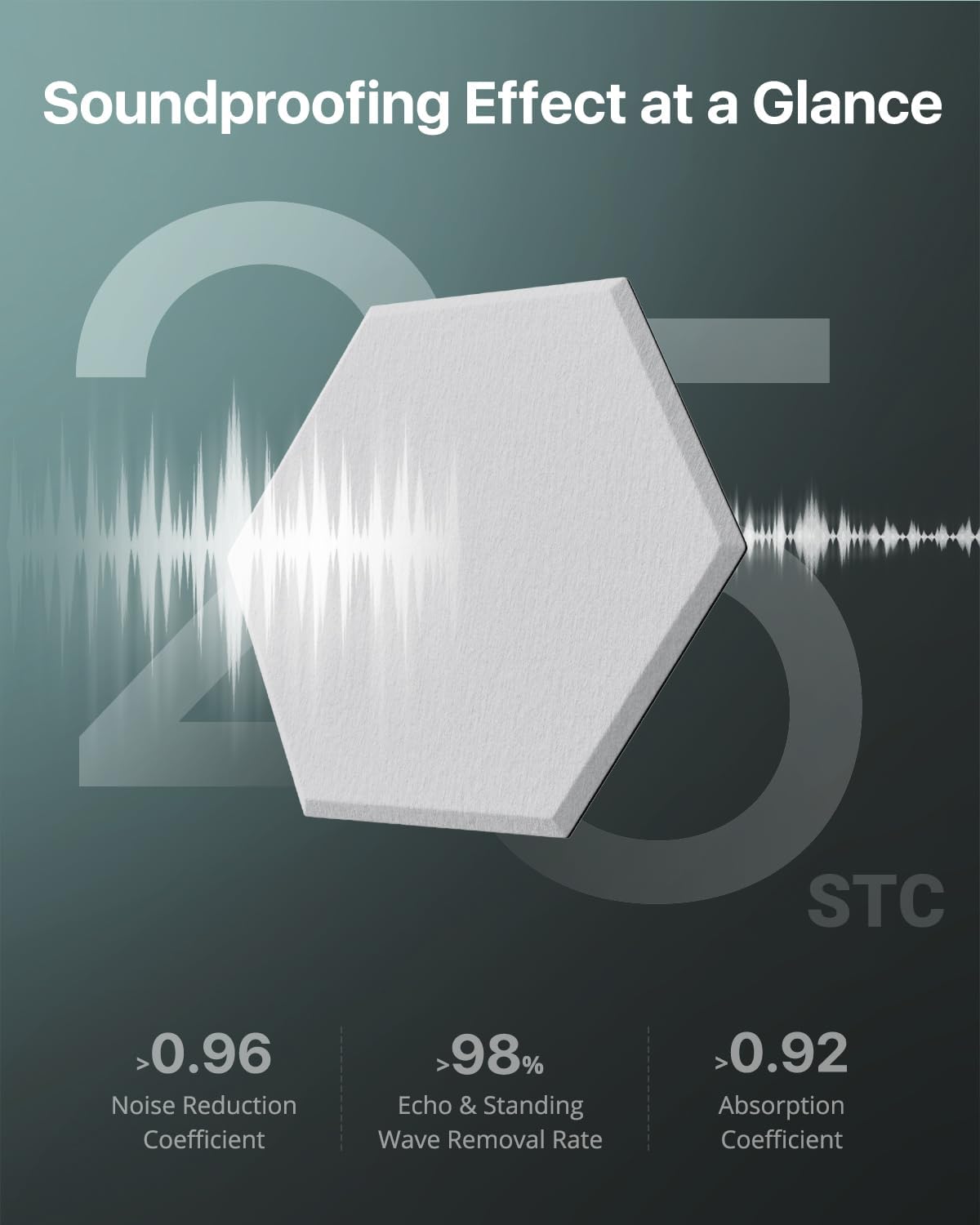 Selbstklebende Akustikplatten, 12 Stück Hexagon