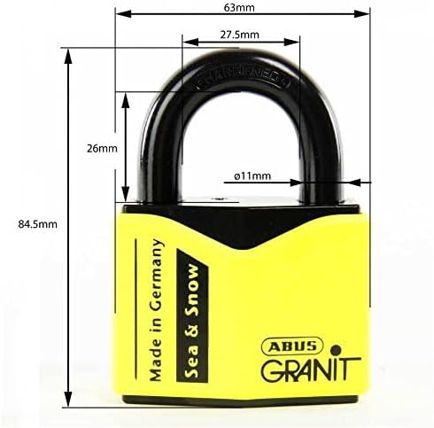 Das ABUS Vorhängeschloss 37/55 GRANIT S&S ist speziell für Einsätze unter harschen Umgebungen wie Meeresklimate, Gebiete in der Nähe von Gewässern und schneebedeckte Regionen konzipiert. Mit seiner markanten gelben Farbe ist es nicht nur ein optischer Blickfang, sondern auch ein Symbol für hohe Sicherheit und Widerstandsfähigkeit. Der aus gehärtetem Spezialstahl gefertigte Körper und Bügel gewährleistet robuste Haltbarkeit und Langlebigkeit des Schlosses. Der mitgelieferte ABUS Plus Zylinder setzt Massstäbe in puncto Einbruchschutz, indem er eine hochgradige Widerstandsfähigkeit gegenüber Picking- und Manipulationsversuchen bietet. Die doppelte Kugelverriegelung unterstreicht weiterhin die Einbruchsicherheit des Schlosses, was es zur idealen Wahl für die Absicherung von wertvollen Gegenständen und Objekten mit hohem Diebstahlrisiko macht. Zusätzlich erfüllt es spezielle Anforderungen von Versicherungen, und die innovative Black Granit Beschichtung sorgt für Korrosionsschutz auch bei extremen Wetterbedingungen.