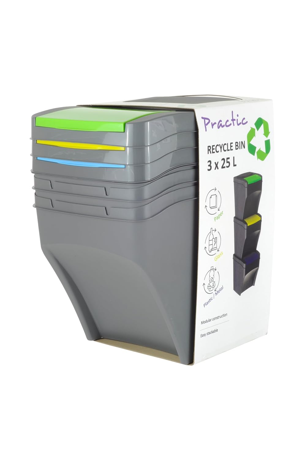 Der Plana Mülleimer überzeugt mit einem durchdachten Design und effizientem Recyclingkonzept. Dieses Trio an Stapelboxen, gefertigt aus robustem Kunststoff, bietet mit je 25 Liter Fassungsvermögen pro Fach ausreichend Platz für eine sortierte Abfallentsorgung. Mit Gesamtmassen von 39 cm in der Länge, 29 cm in der Breite und einer Höhe von 91 cm fügt sich der Abfalleimer nahtlos in jede Küchenumgebung ein. Die farblich differenzierten Deckel erleichtern die Mülltrennung und tragen zu einer nachhaltigen Abfallwirtschaft bei.