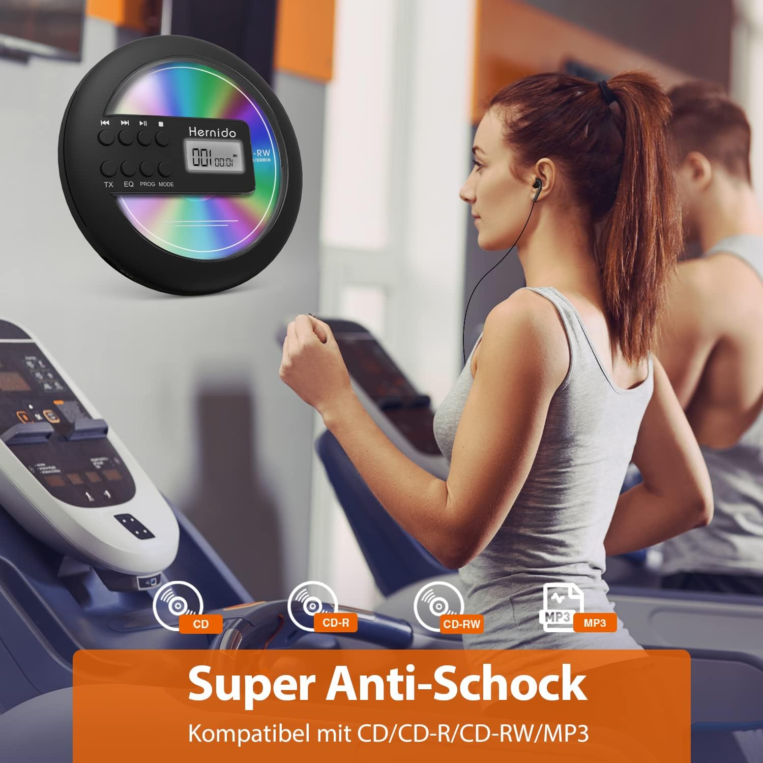 Der Hernido Tragbare CD-Player ist ein kompakter und benutzerfreundlicher Begleiter, ideal geeignet für die Musik- und Hörbuchliebhaber aller Altersgruppen. Mit einem Gewicht von lediglich 250 Gramm lässt sich dieser Walkman mühelos in der Hand halten oder in einer Tasche verstauen. Zudem kann er problemlos im Auto platziert werden und durch seine stossfeste Funktion sowie die fortsetzende Wiedergabe entstehen keine Unterbrechungen beim Hörgenuss. Die Anti-Schock-Technologie sorgt mit 60 Sekunden Anti-Skip-Schutz für CDs und 120 Sekunden für MP3-Discs für ungestörten Klang. Zusätzliche Flexibilität erhält der Nutzer durch die 20-stündige Akkulaufzeit und die Bequemlichkeit der USB-Aufladung. Als auditive Zentrale bietet der Hernido Discman insgesamt fünf verschiedene Soundeinstellungen - BBS, Pop, Jazz, Rock und Klassik, die zusammen mit den inkludierten, qualitativ hochwertigen Stereo-Kopfhörern ein immersives Klangerlebnis gewährleisten. Der integrierte FM-Transmitter ermöglicht eine einfache Verbindung mit dem Autoradio, wodurch der Hernido CD-Player zum idealen Begleiter für Autofahrten wird. Weiterhin ermöglicht ein 3,5-mm-AUX-Kabel die Verbindung mit externen Lautsprechern.
