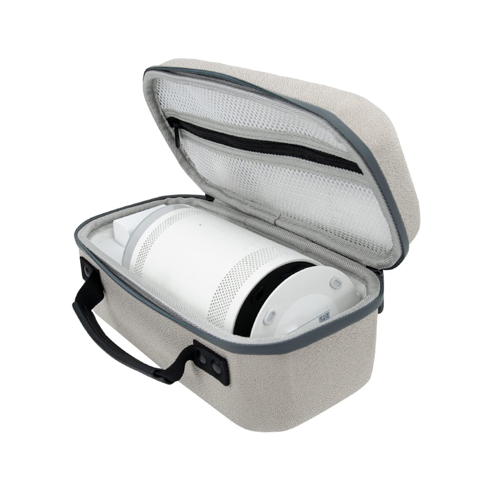 Diese Tragetasche aus hochdichtem EVA-Material ist eine harte Reisehülle für den Samsung The Freestyle-Projektor. Sie schützt vor Schäden und Schmutz. Das weiche Innenfutter besteht aus weissem Samt. Dank eines stabilen Griffes ist die Tasche einfach und sicher zu tragen.