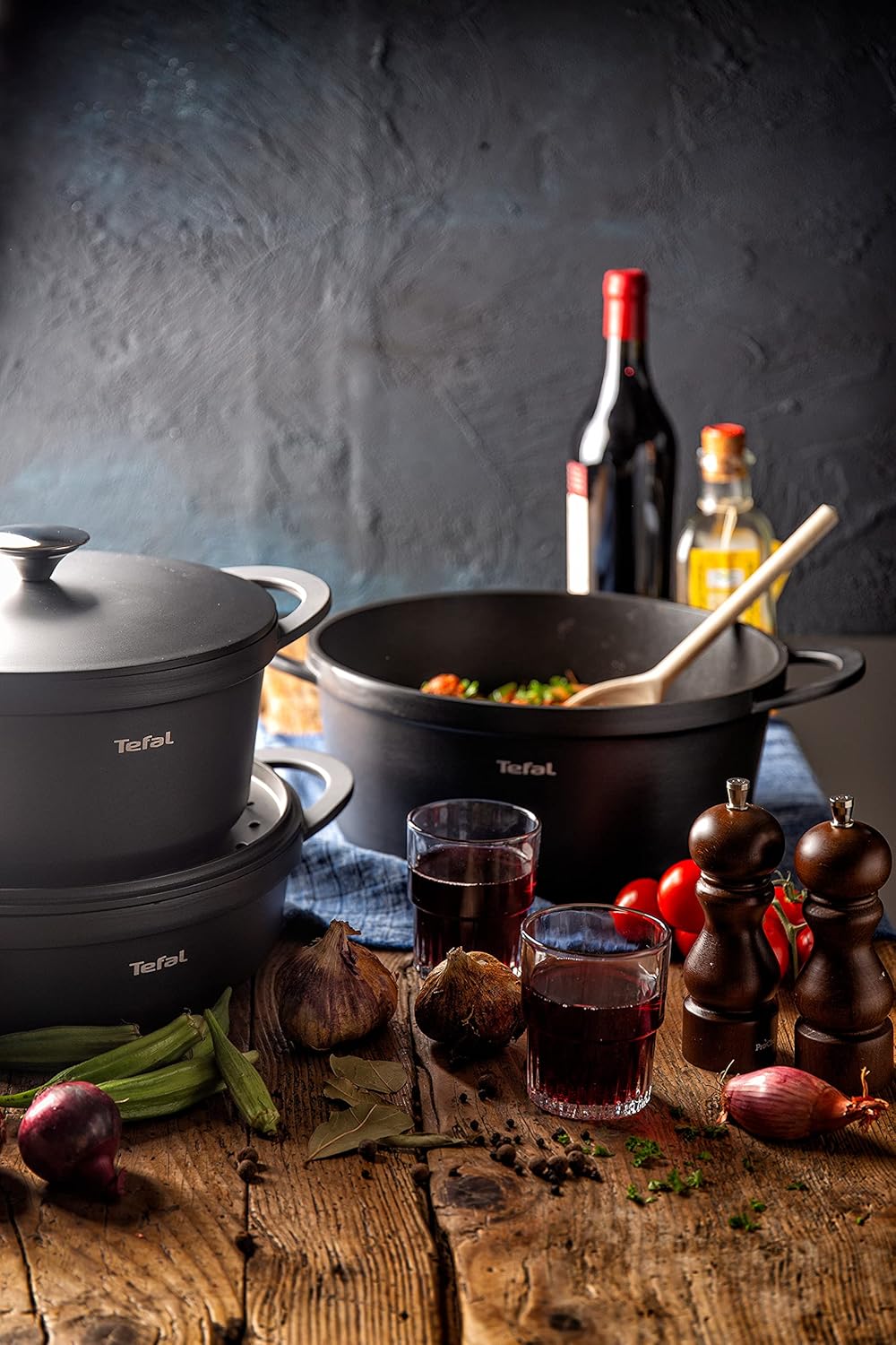 Der Tefal Trattoria Kochtopf ist auf maximale Geschmacksentfaltung ausgerichtet und überzeugt mit einer verbesserten Wärmespeicherung für gleichmässiges Garen und zarte, geschmackvolle Gerichte. Erleben Sie den Unterschied mit der Titanium Extra Antihaftbeschichtung, die sich mühelos reinigen lässt. Das robuste, langlebige Design mit starkem Aluguss-Boden garantiert, dass all Ihre Lieblingsgerichte perfekt gelingen. Hohe Wärmespeicherung, elegante Aluguss-Konstruktion mit dickem Boden sorgt für besonders gute Wärmespeicherung, ideal für zarte, köstliche Gerichte. Antihaft-Beschichtung: Titanium Extra Antihaft-Versiegelung für leichte Handhabung und mühelose Reinigung. Aluguss-Deckel mit Kondensierungssystem, geeignet für alle Herdarten, inklusive Induktionsherde. Tefal ist weltweit Nr. 1 bei Kochgeschirr und sorgt für gelungene Kochergebnisse, recycelbare Produkte (PFOA-, Blei- und Cadmiumfrei).